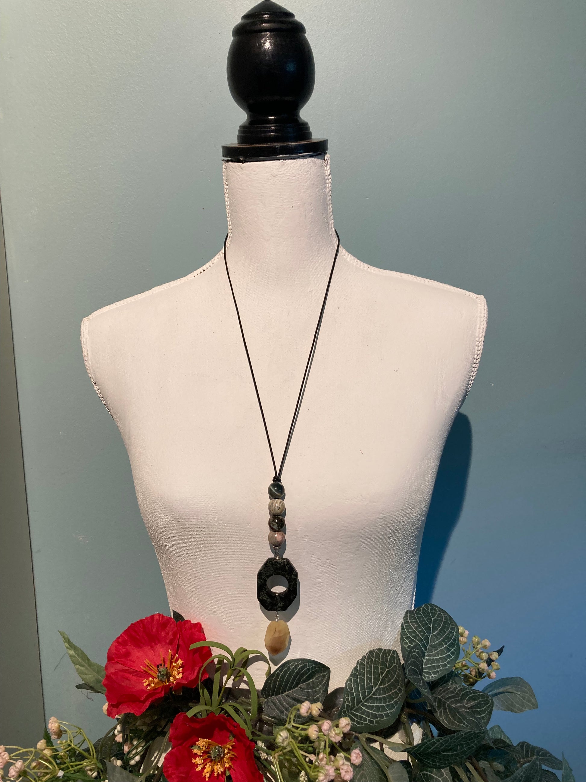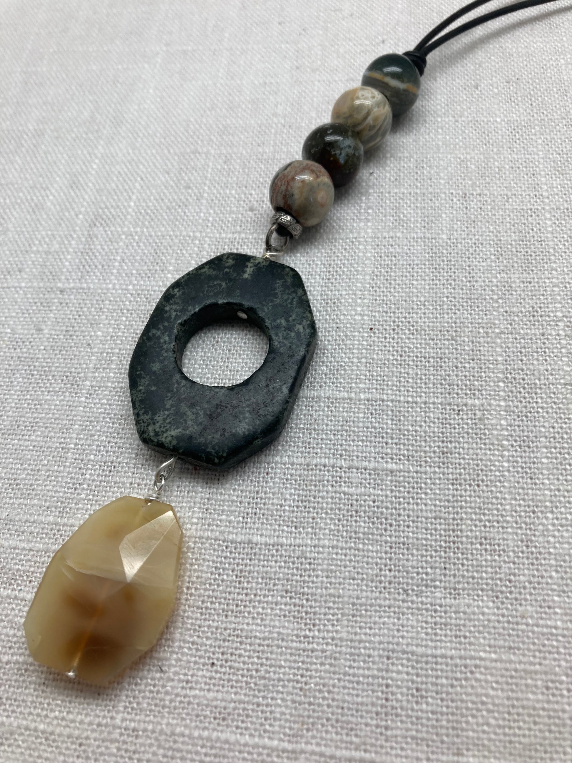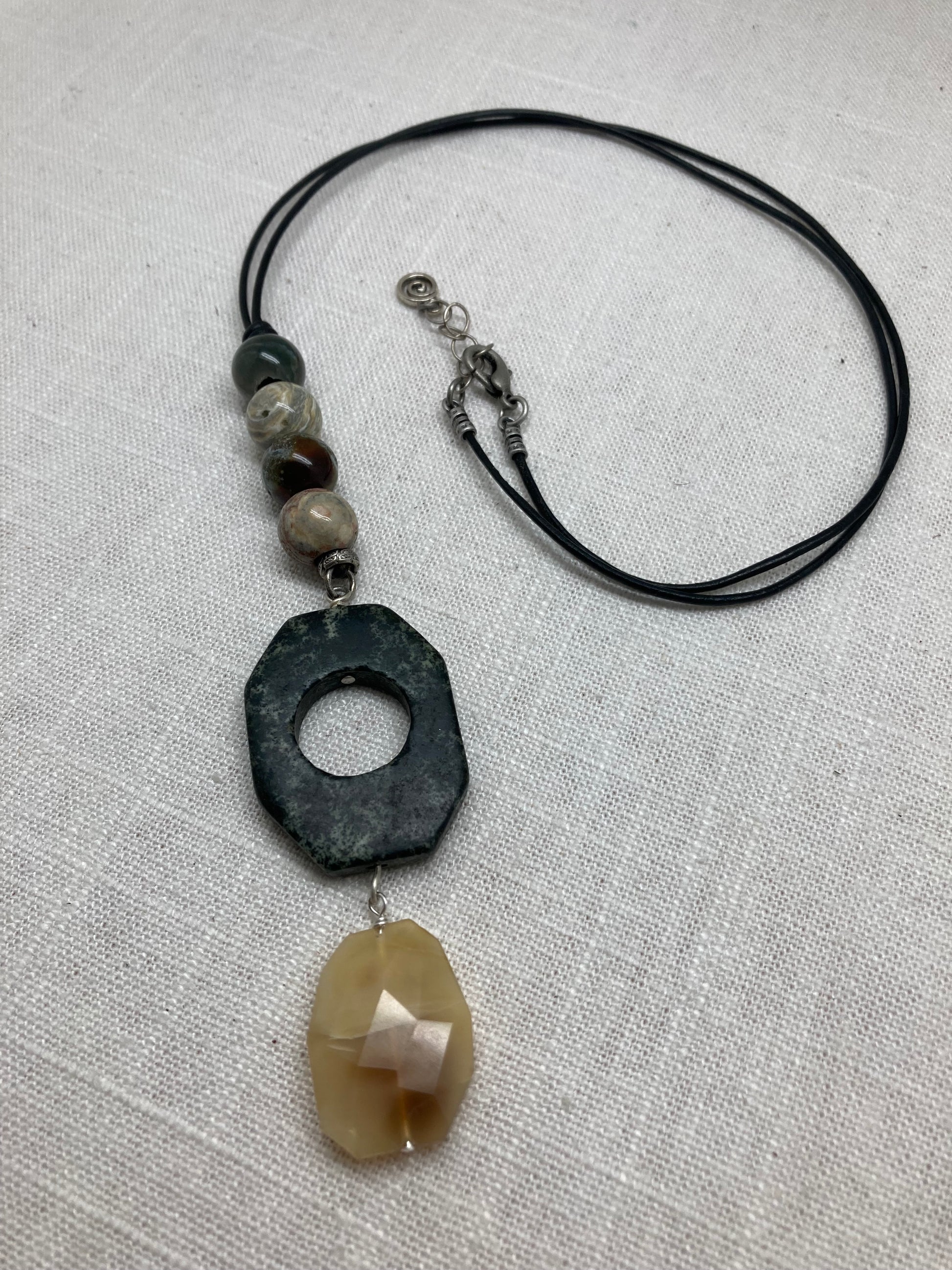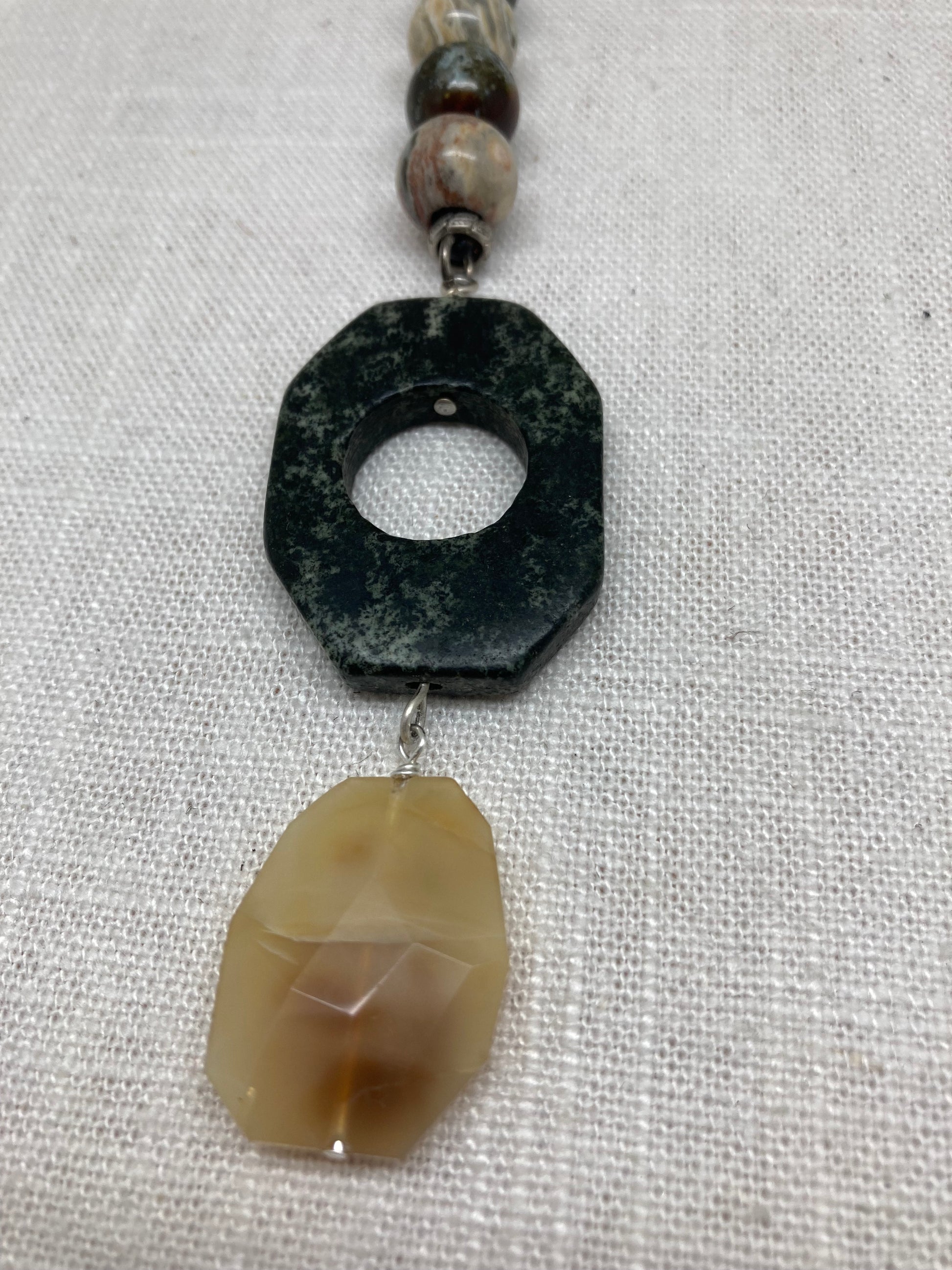 Agate comes in many natural earthy colors. I combined different colored rounds with an interesting octagonal donut and finished it with a rough cut citrine nugget.