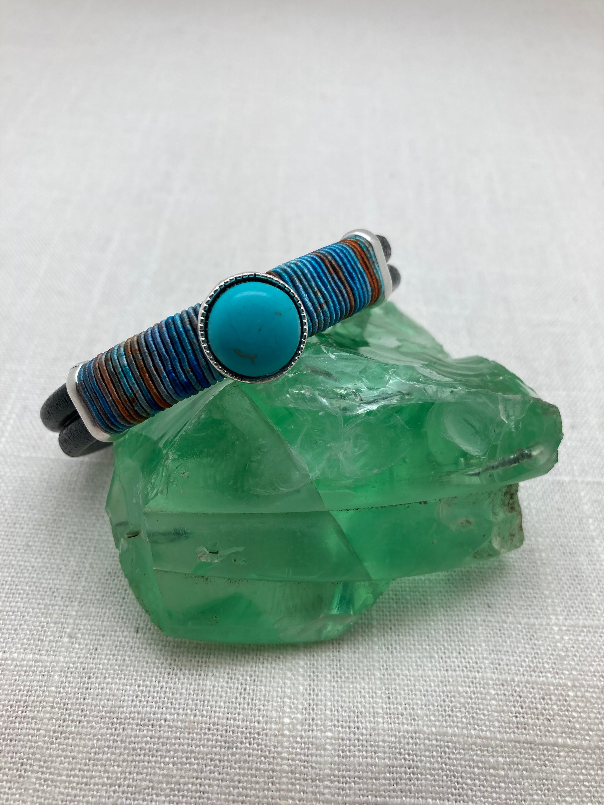 The Azul Sunset bracelet is finished with a round turquoise and silver focal bead.