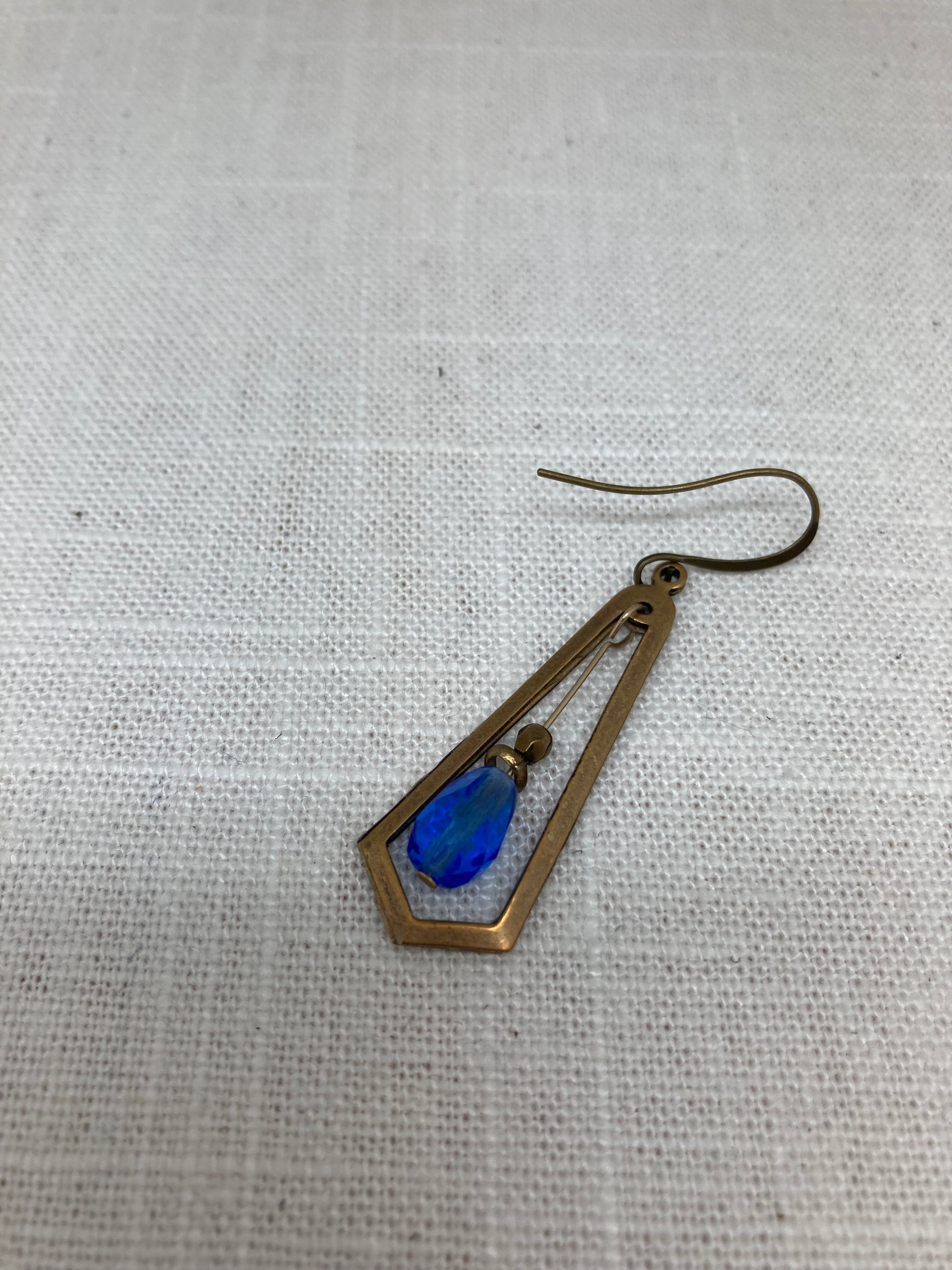 These earrings are a combination of rustic brass and a beautiful tanzanite colored crystal.