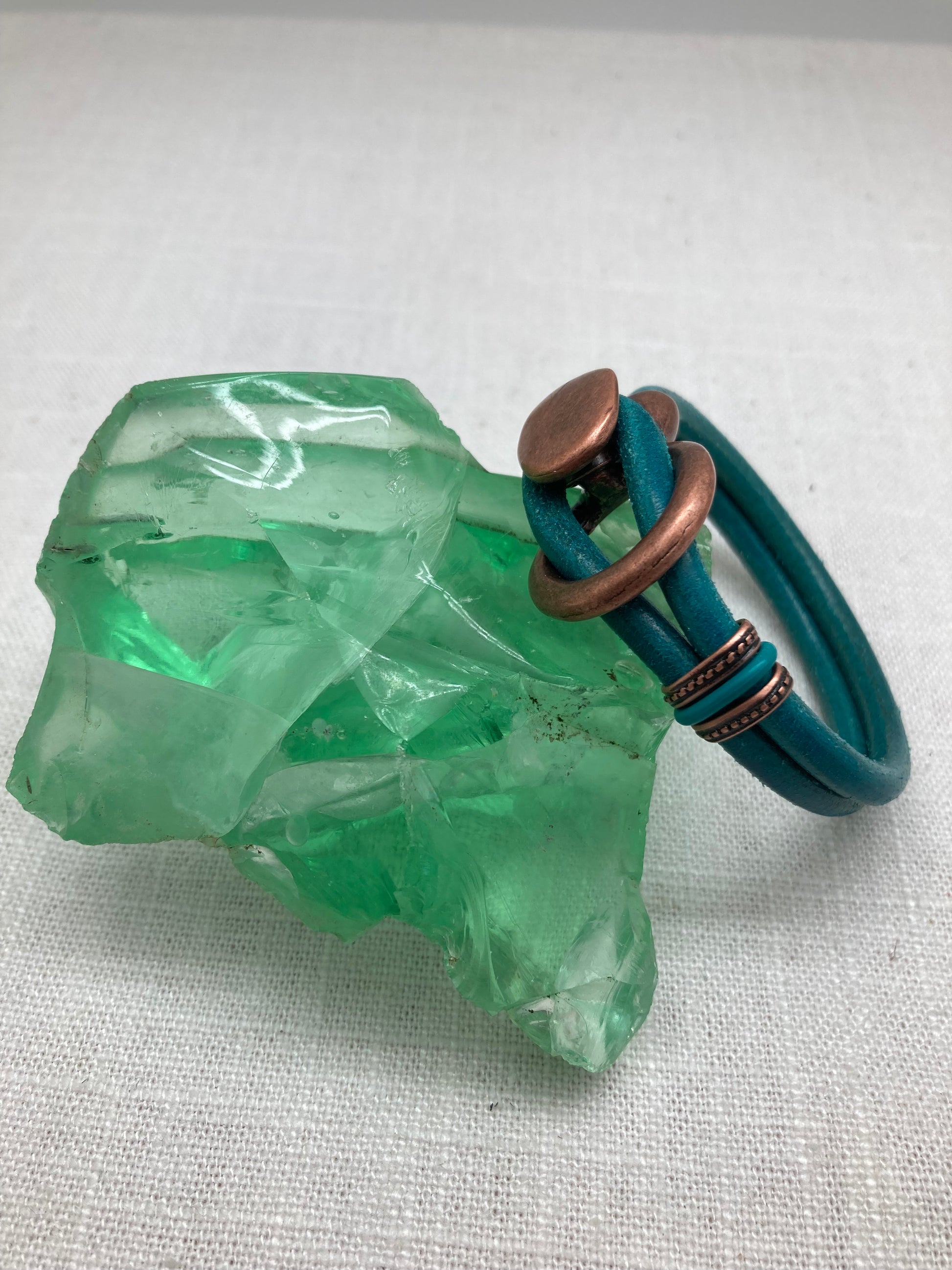 I'm forever pairing copper with turquoise. This bracelet is a variation of the popular hitching post bracelet with a more prominent clasp