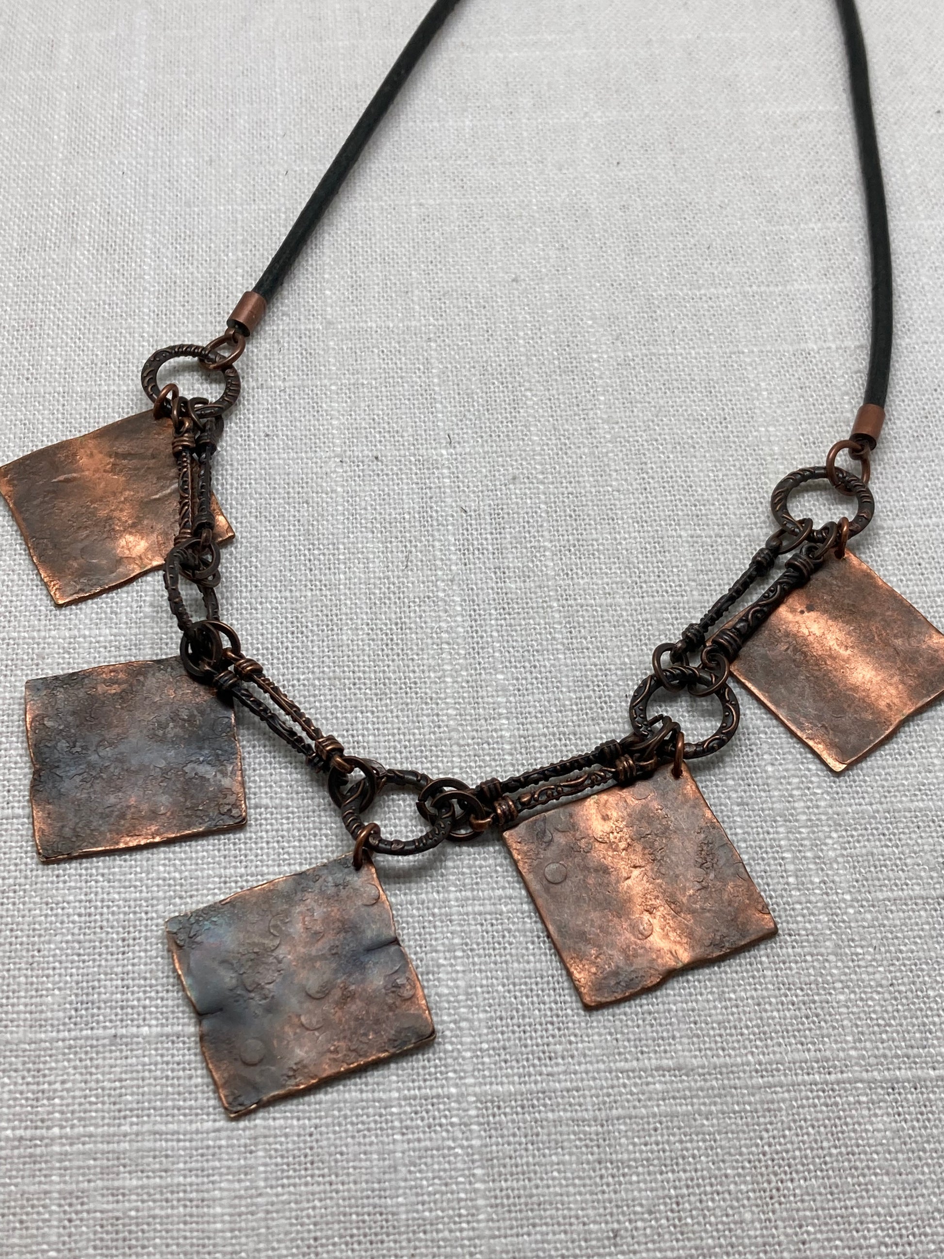 This is one of my favorite pairing pieces. It is mid length so goes well with some of the longer copper pieces or makes a big statement on its own.