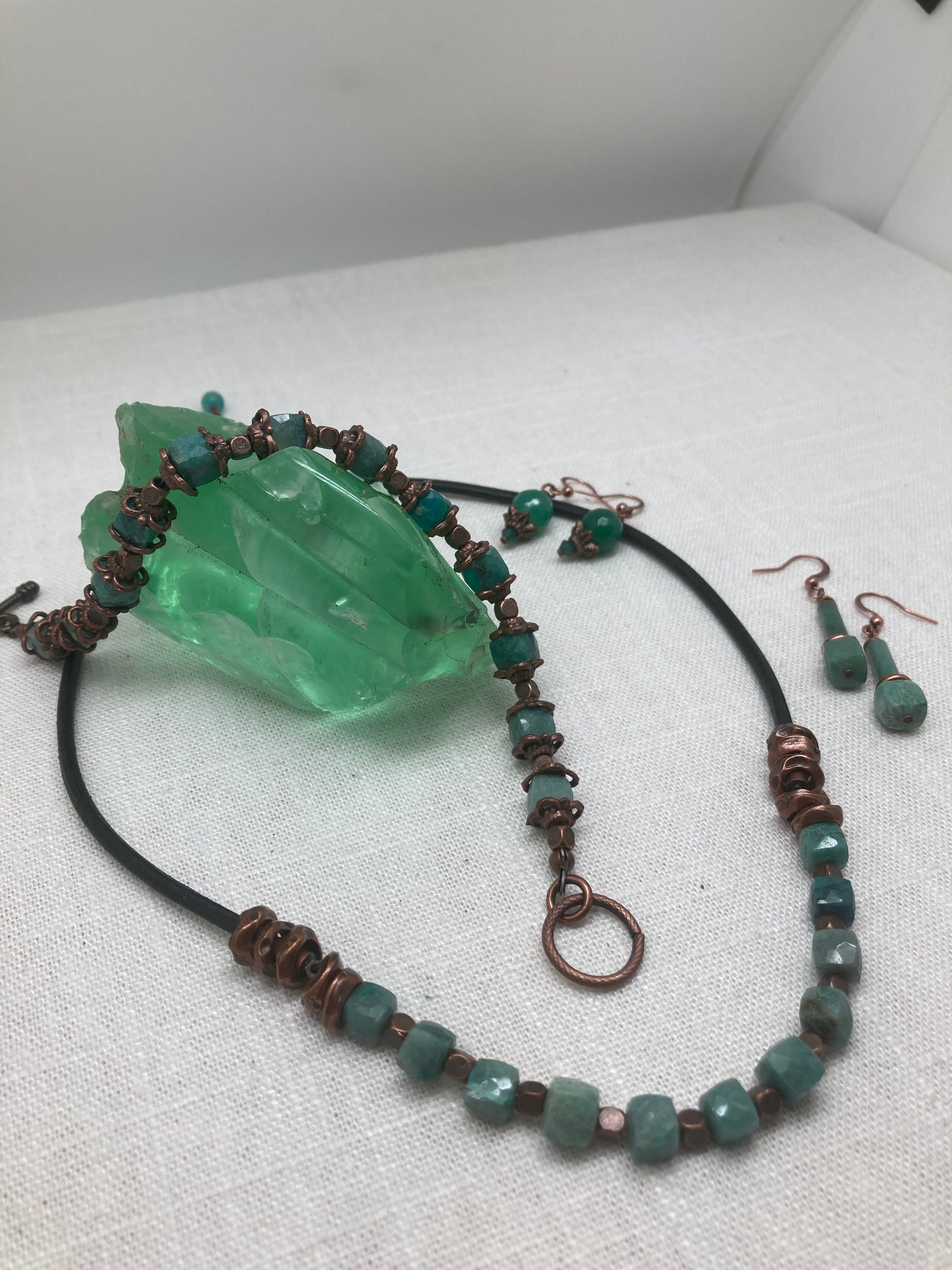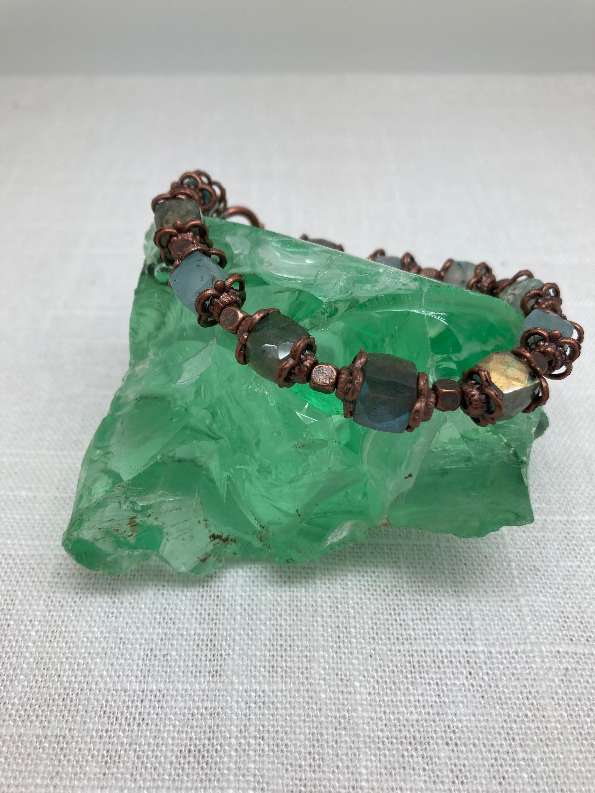 Gorgeous beveled cubes surrounded by rustic copper and finished with a simple closure toggle clasp
