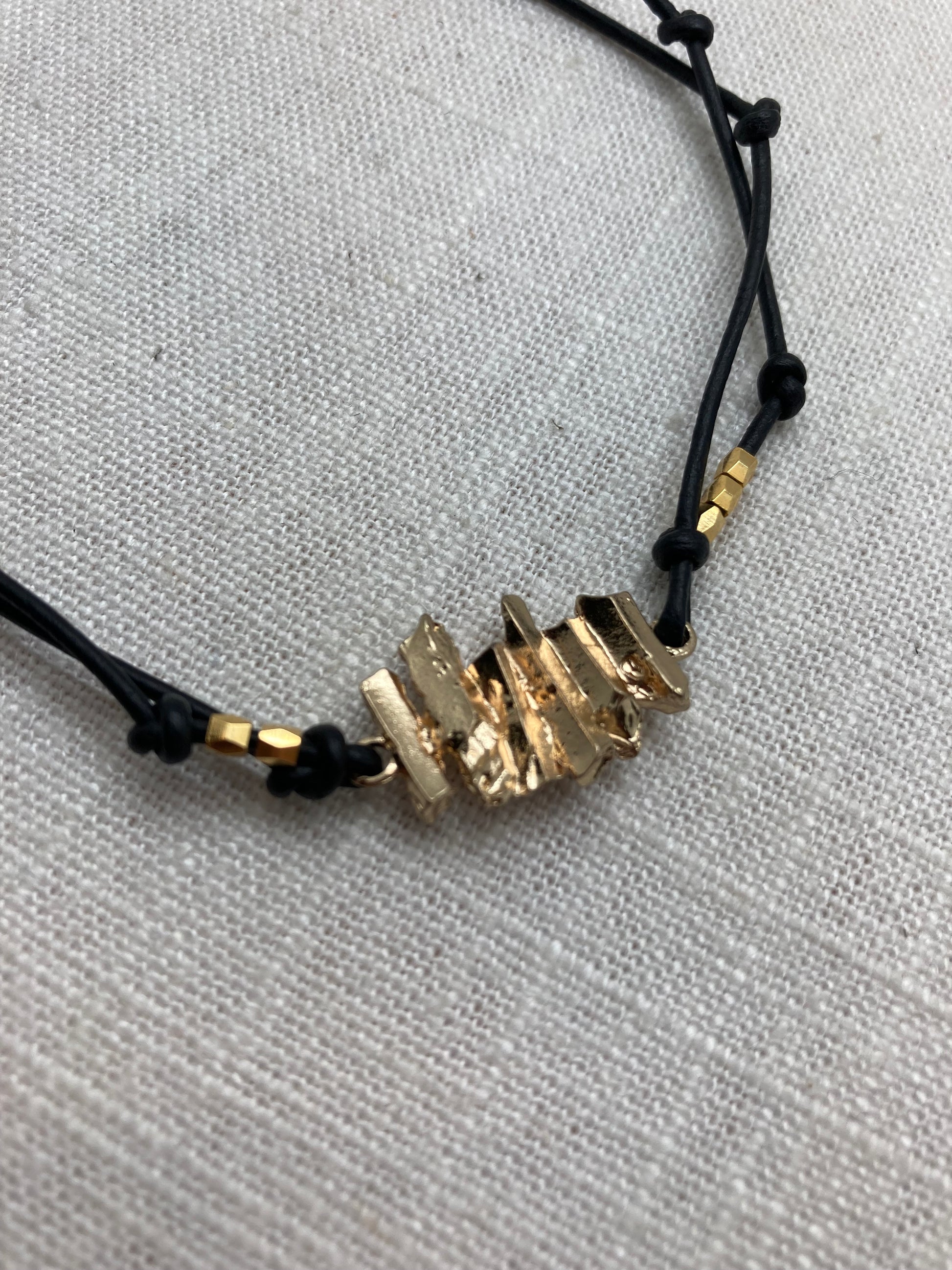 A great bracelet companion to the Gold Layering Pieces, this bracelet spotlights gold plated nuggets.