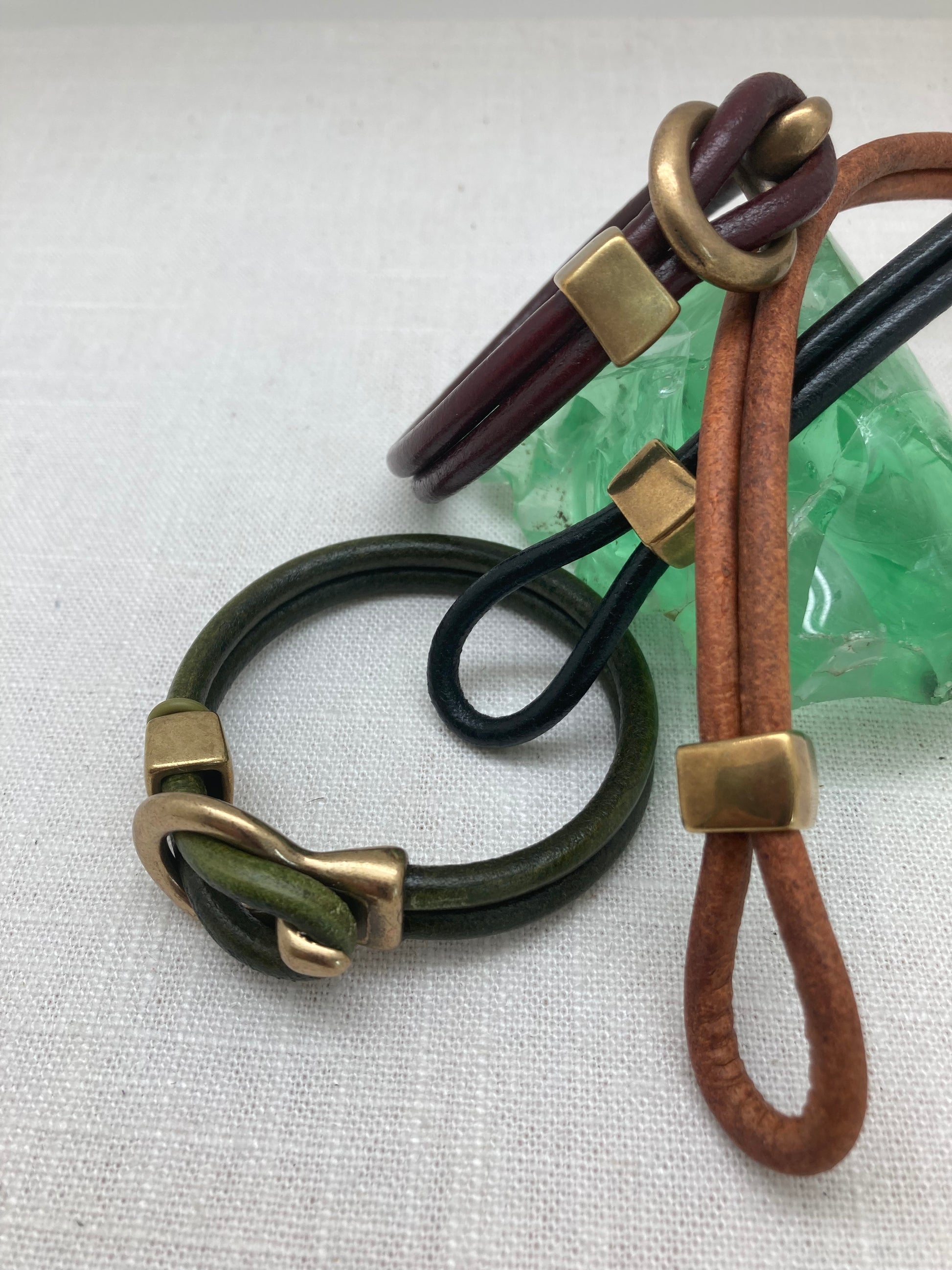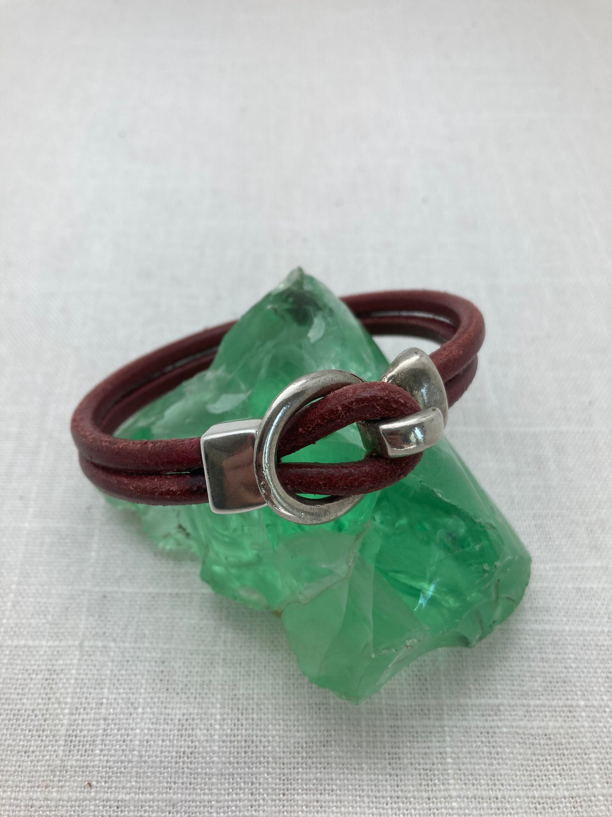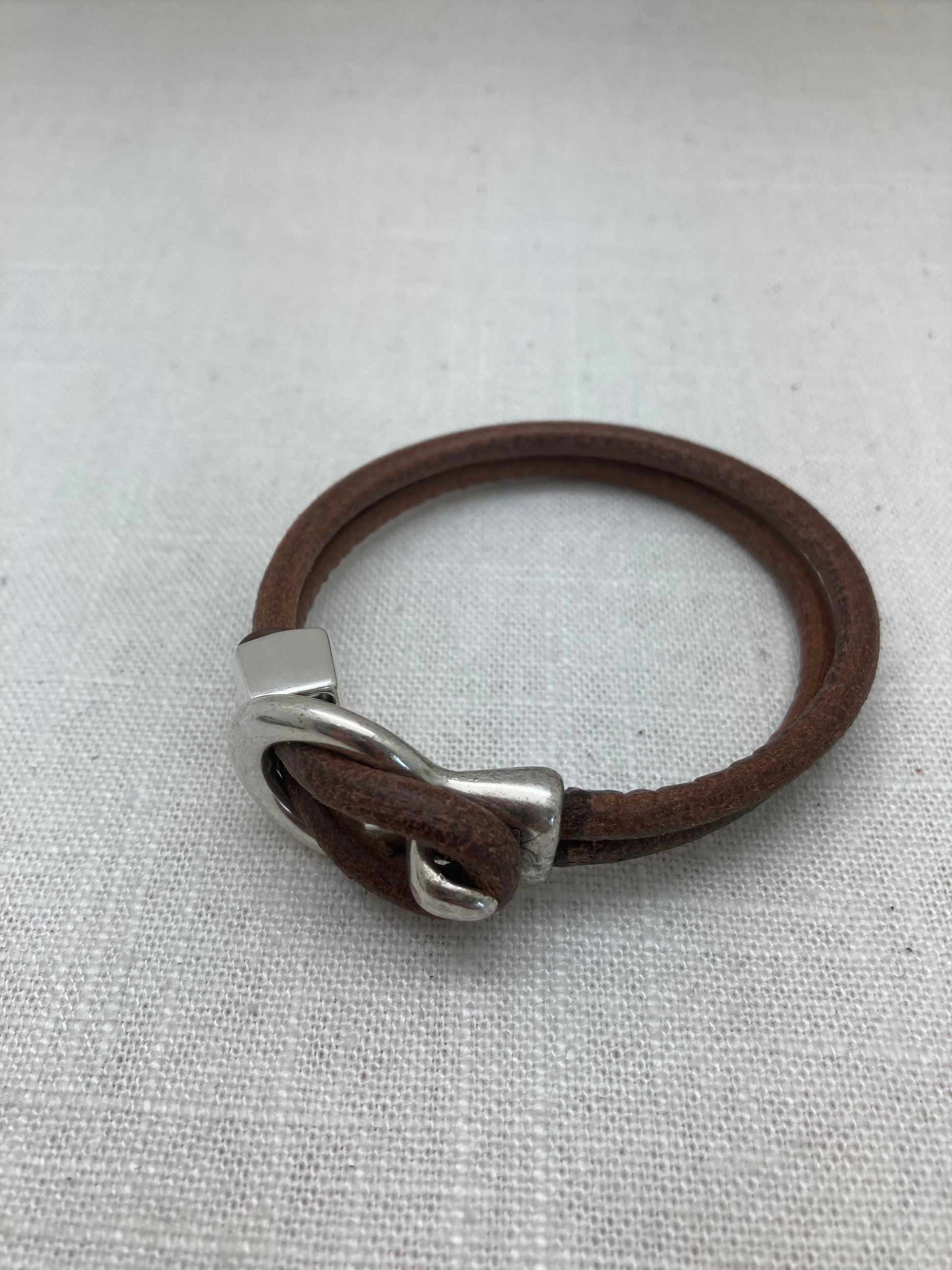 Heavy high-quality leather looped and secured with an open metal clasp.
