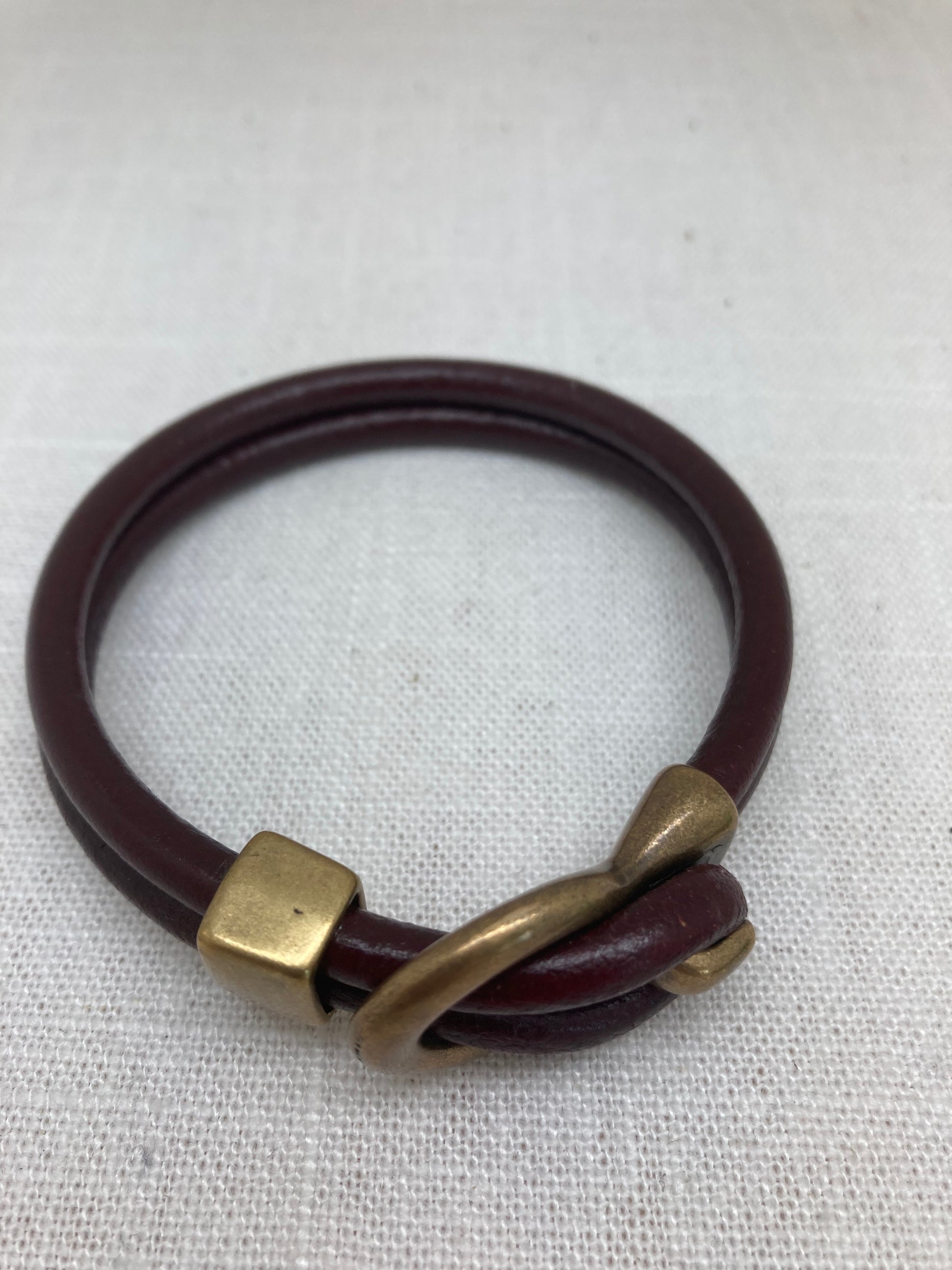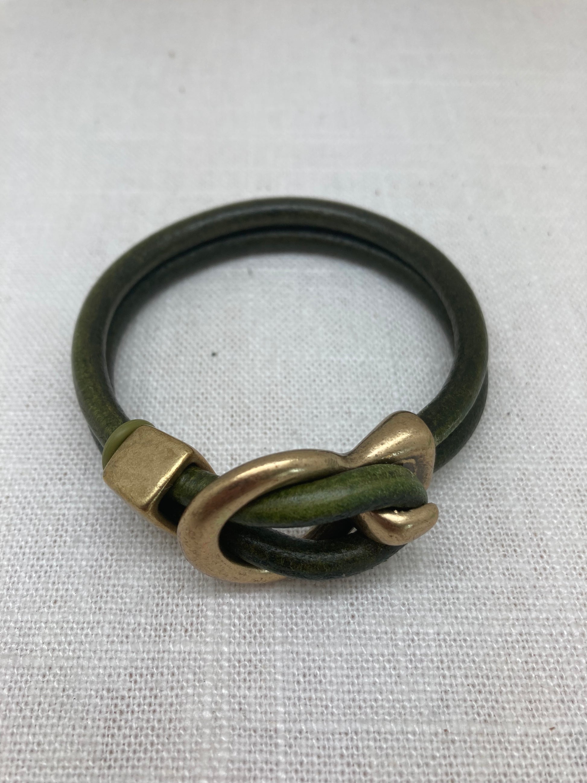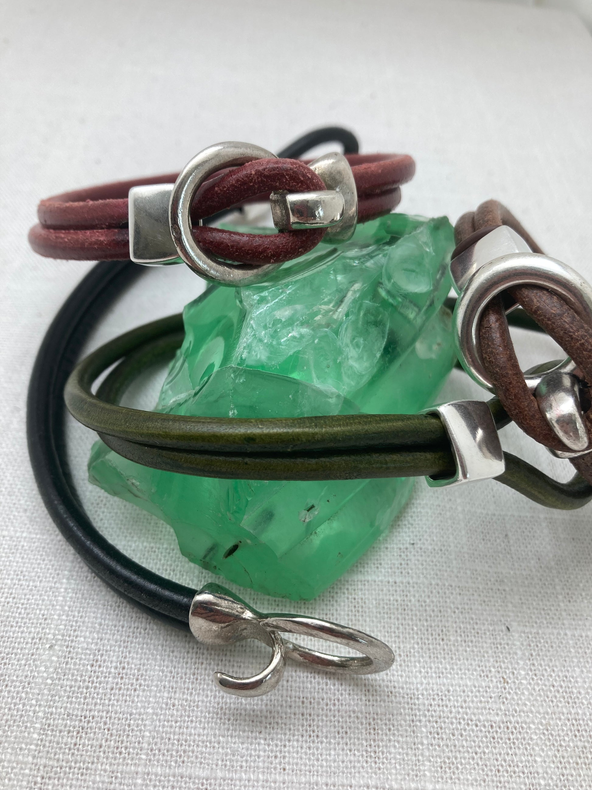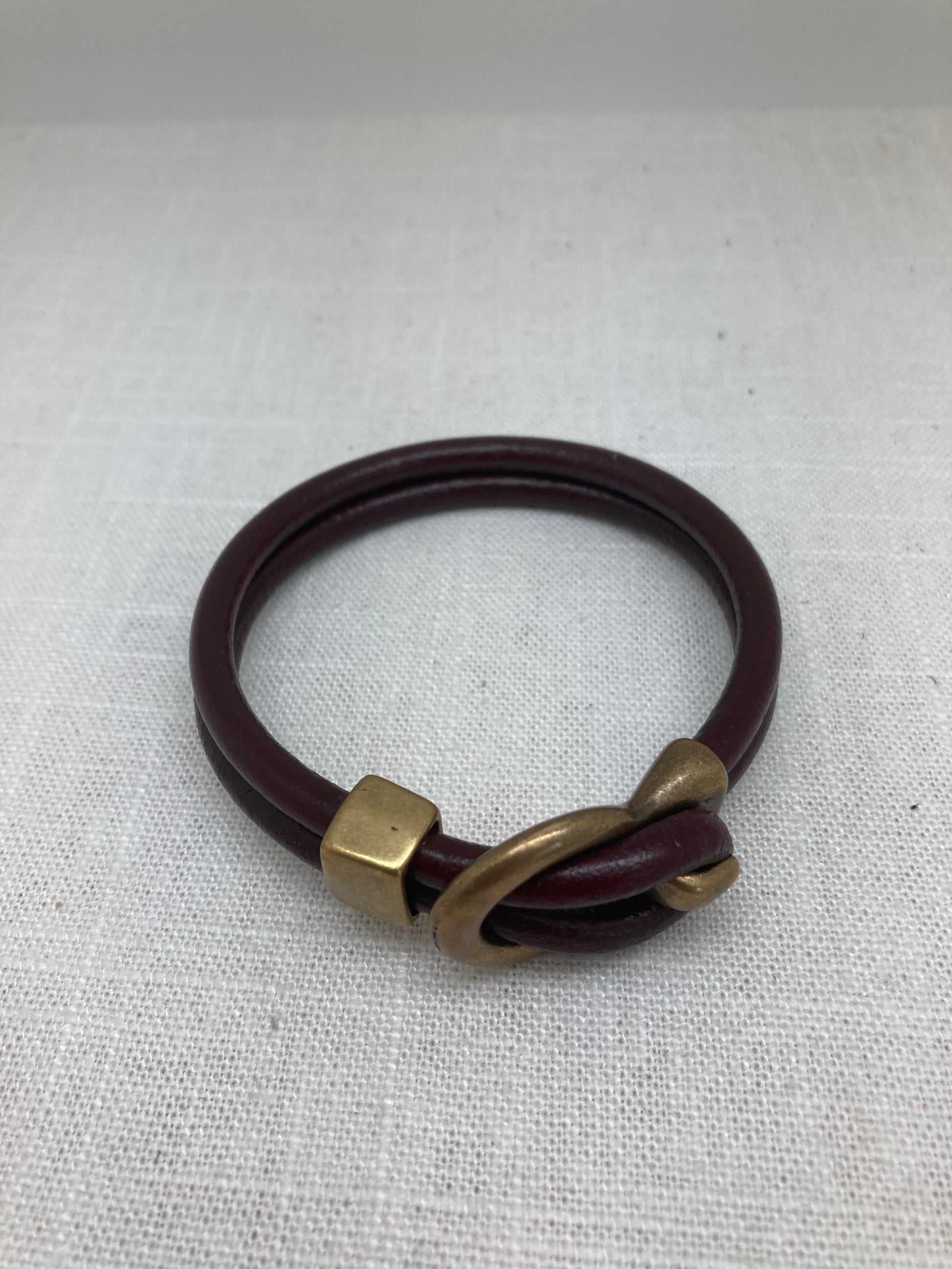 Heavy high-quality leather looped and secured with an open metal clasp.