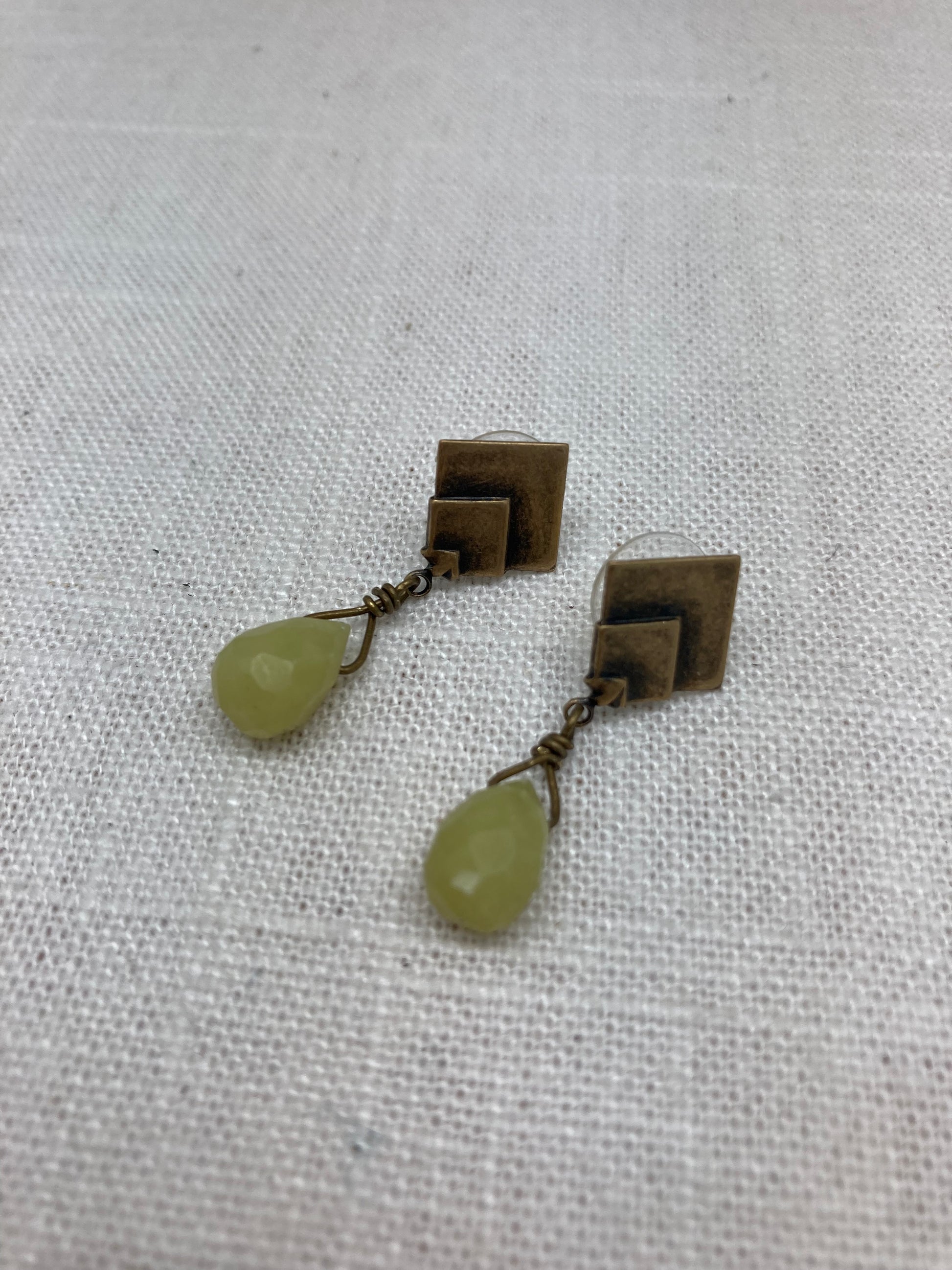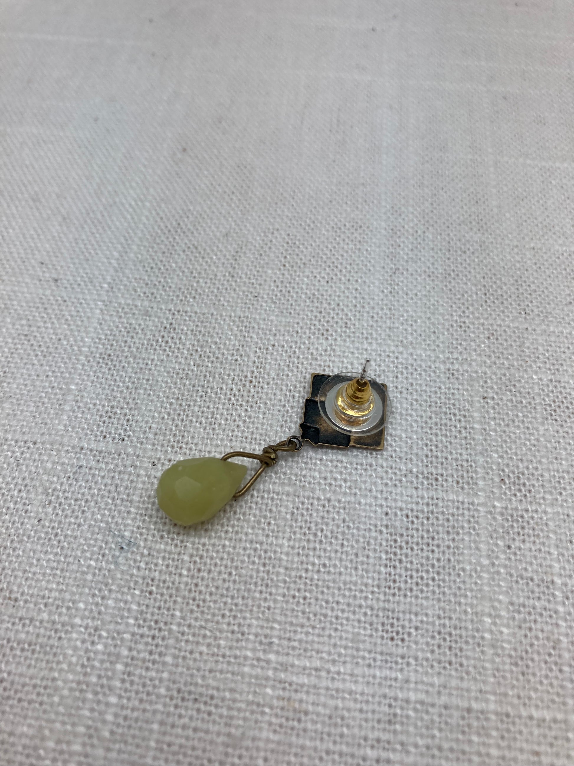 Tiny lemon jade briolettes attached to an art  deco inspired post.