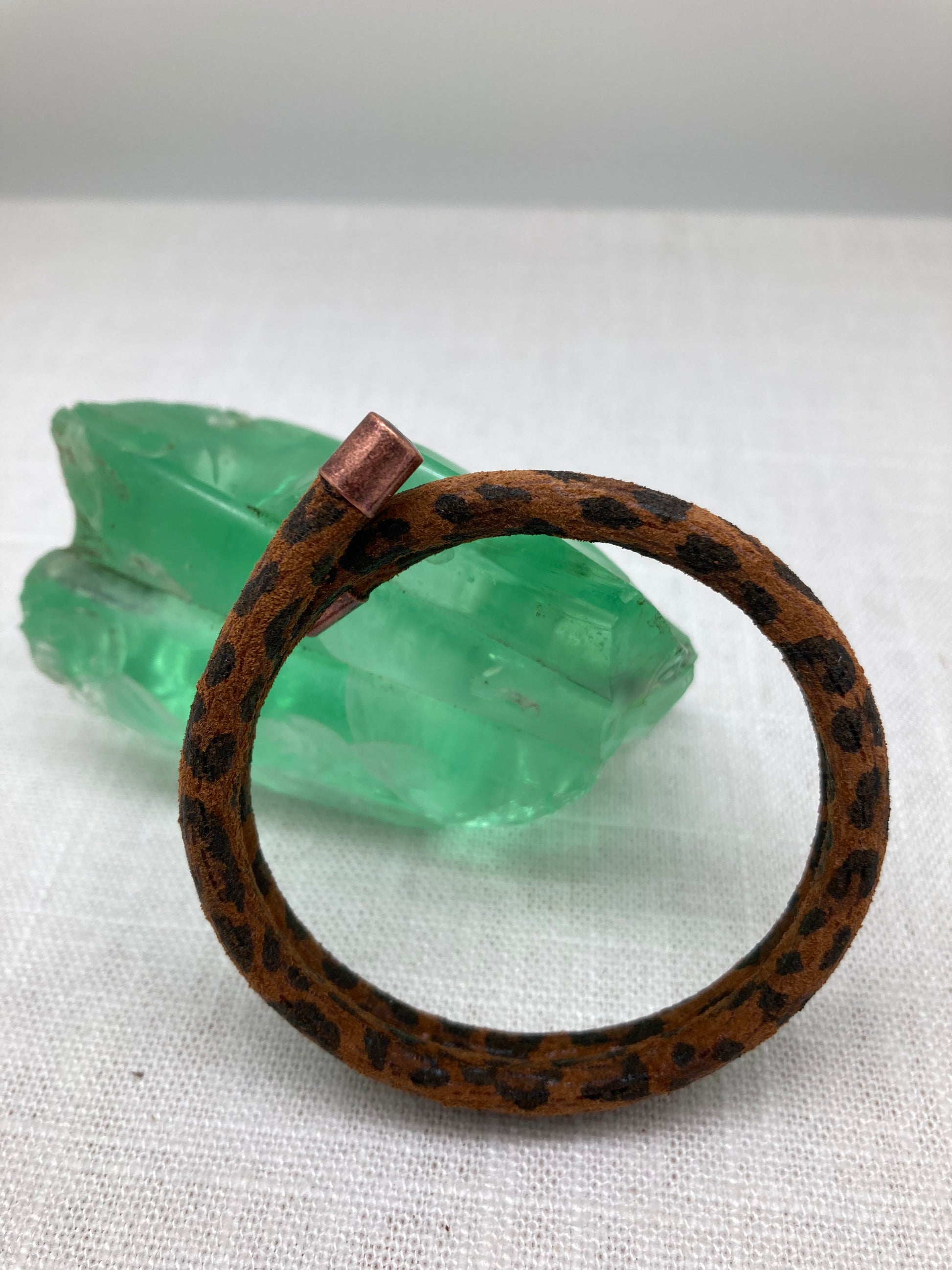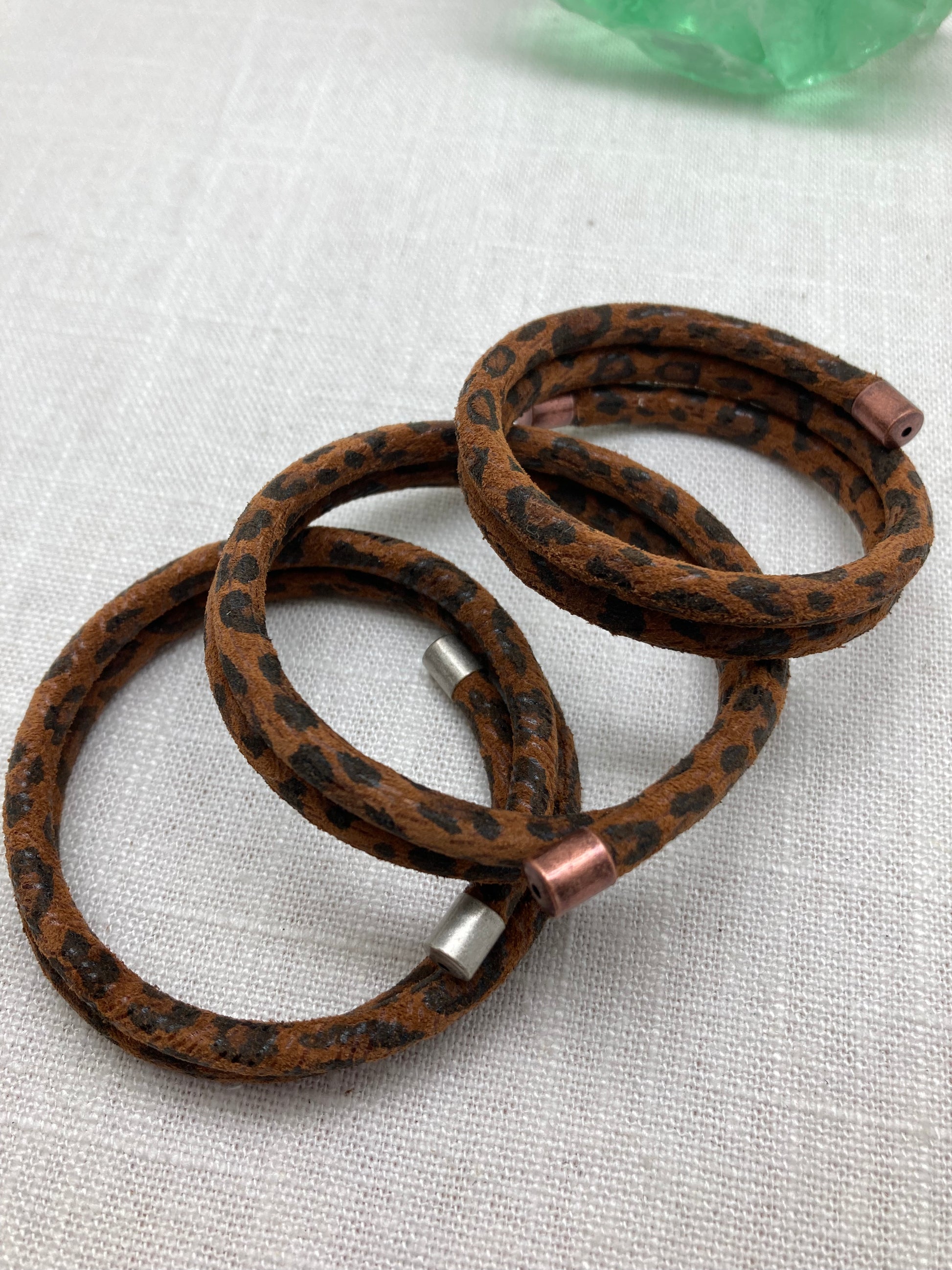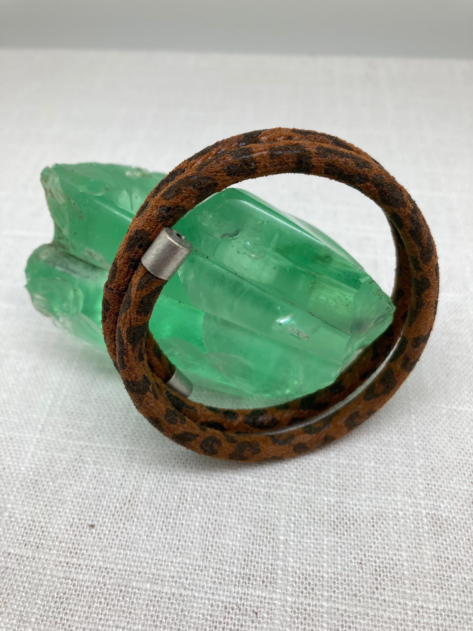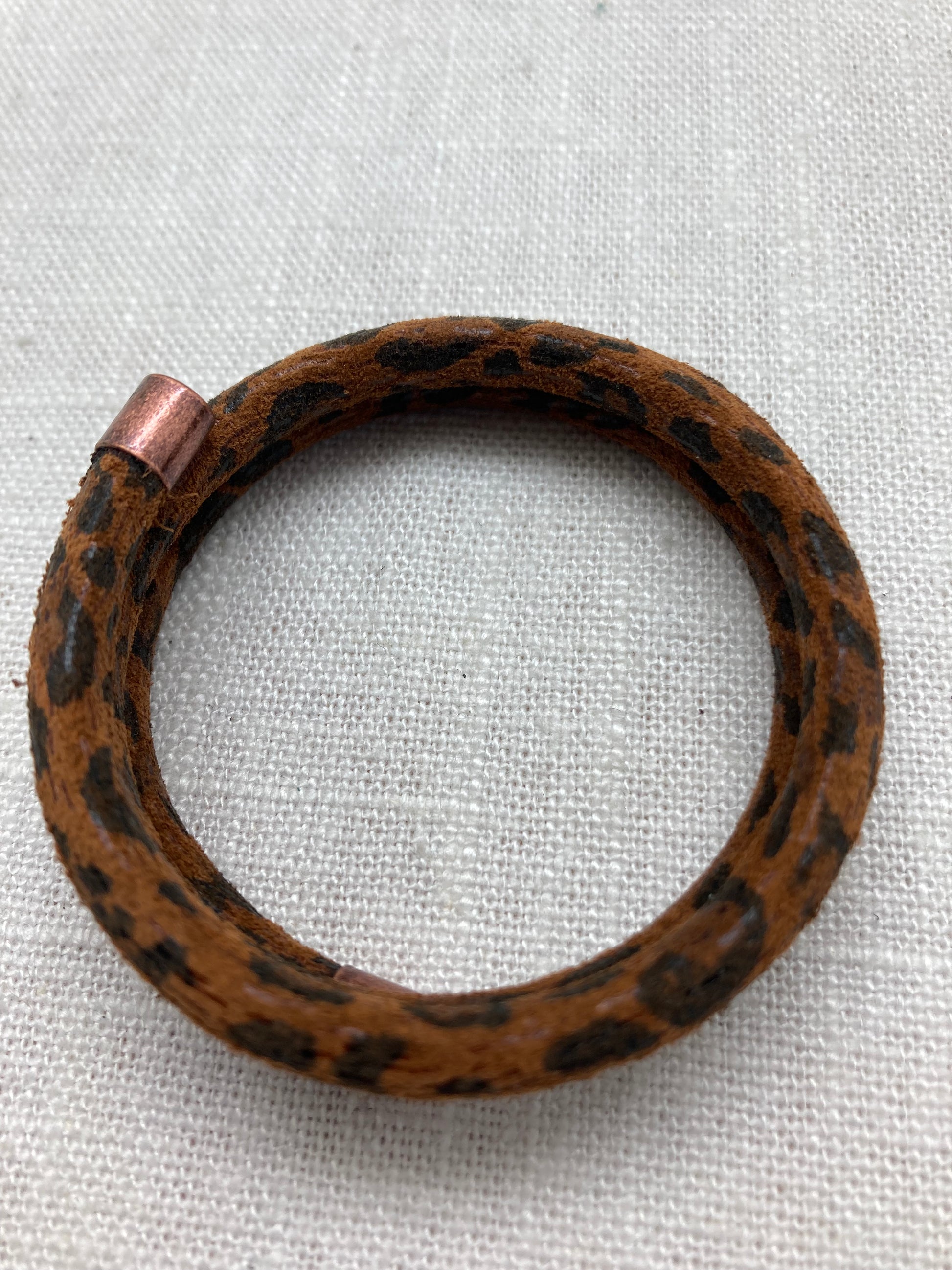Simple sueded leather that wraps easily on and off. One size fits most wrists.