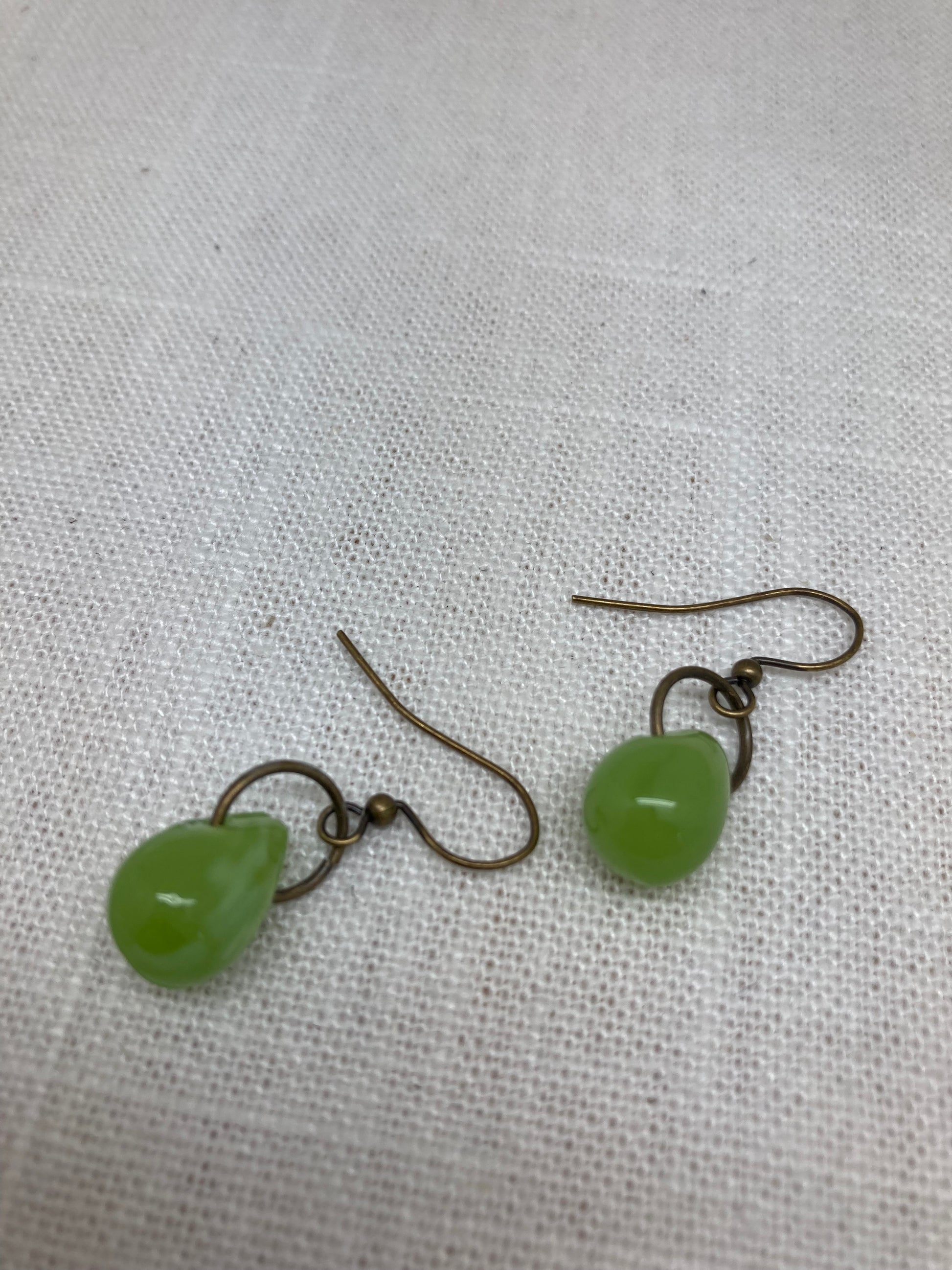 These simple yet stunning lime green Czech glass briolettes make a great companion to many of the vintage brass necklaces and bracelets.