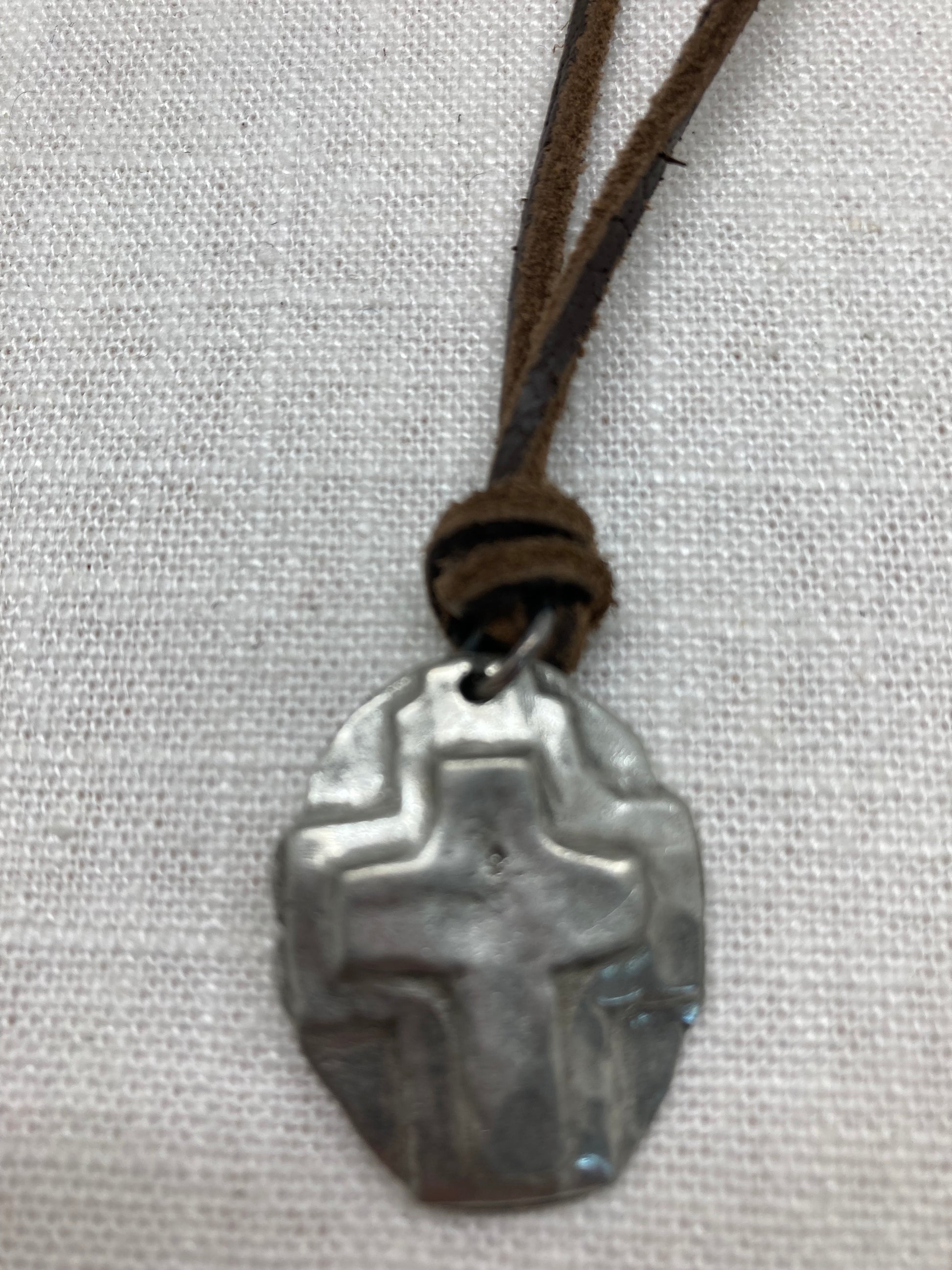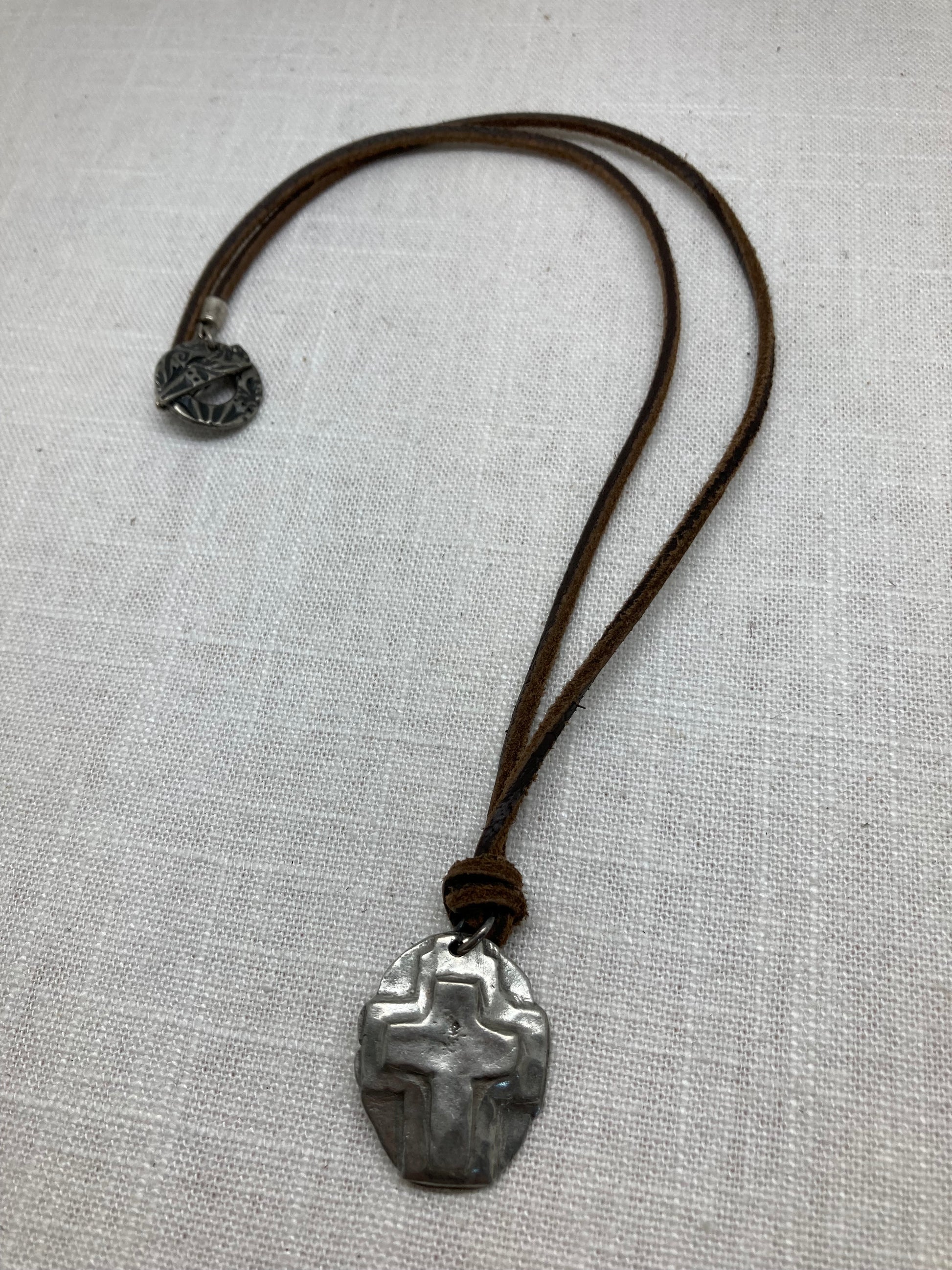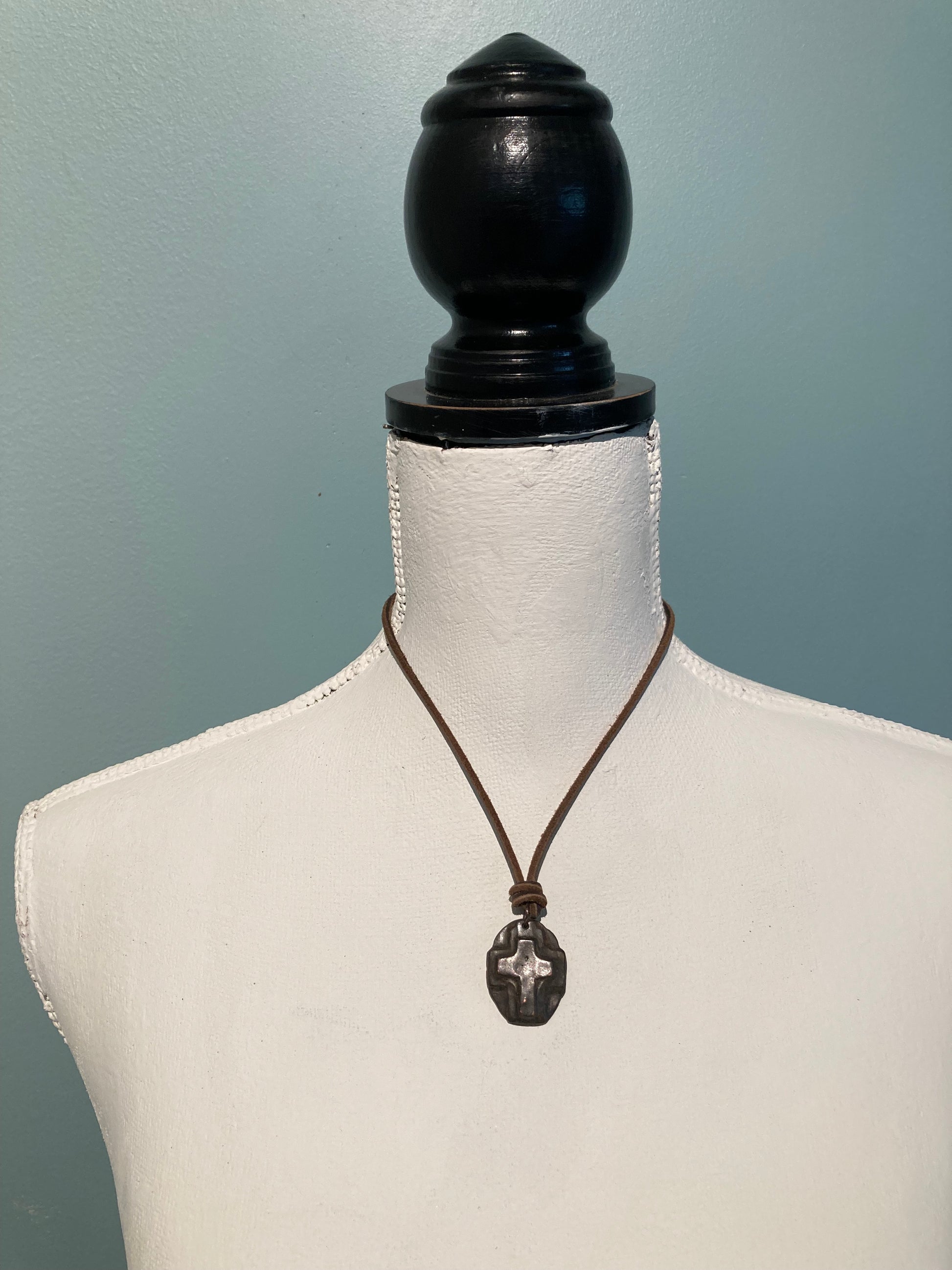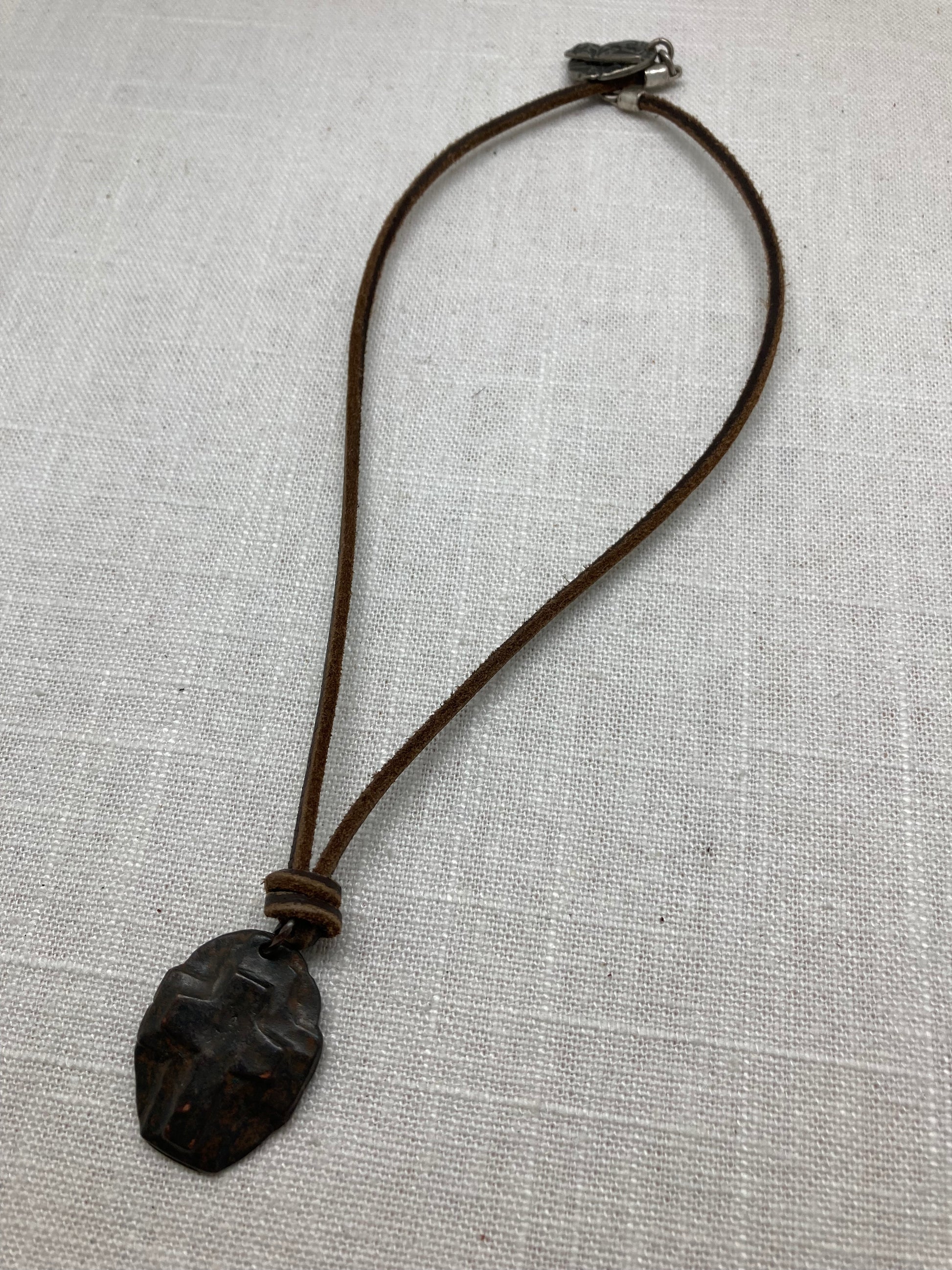 This is a very rustic square leather cord that has been softened and faded by weather.I've attached some different charms to different lengths of it and together they exude a very casual vibe.
