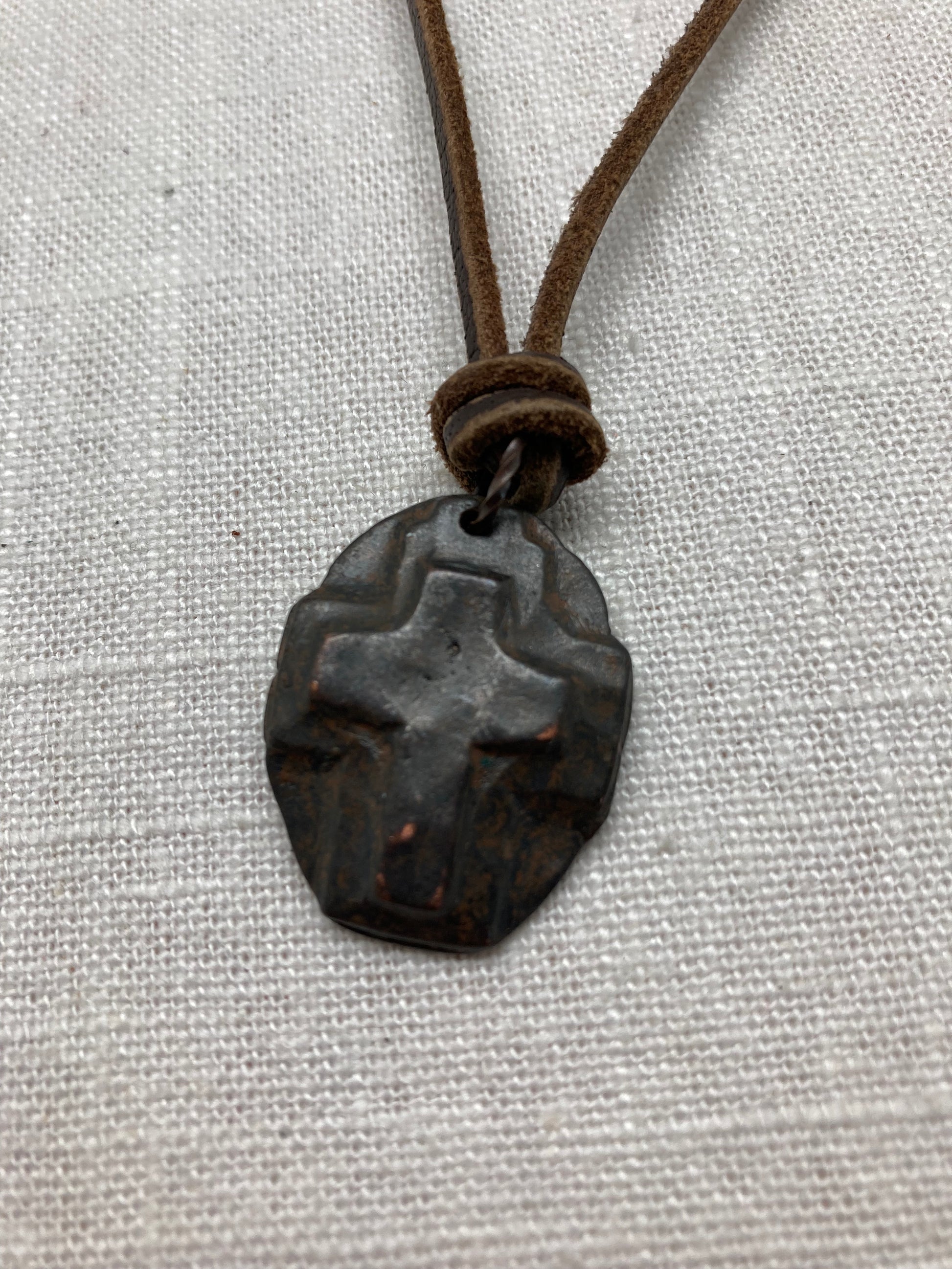This super soft brown leather corn sports an oval cast cross.