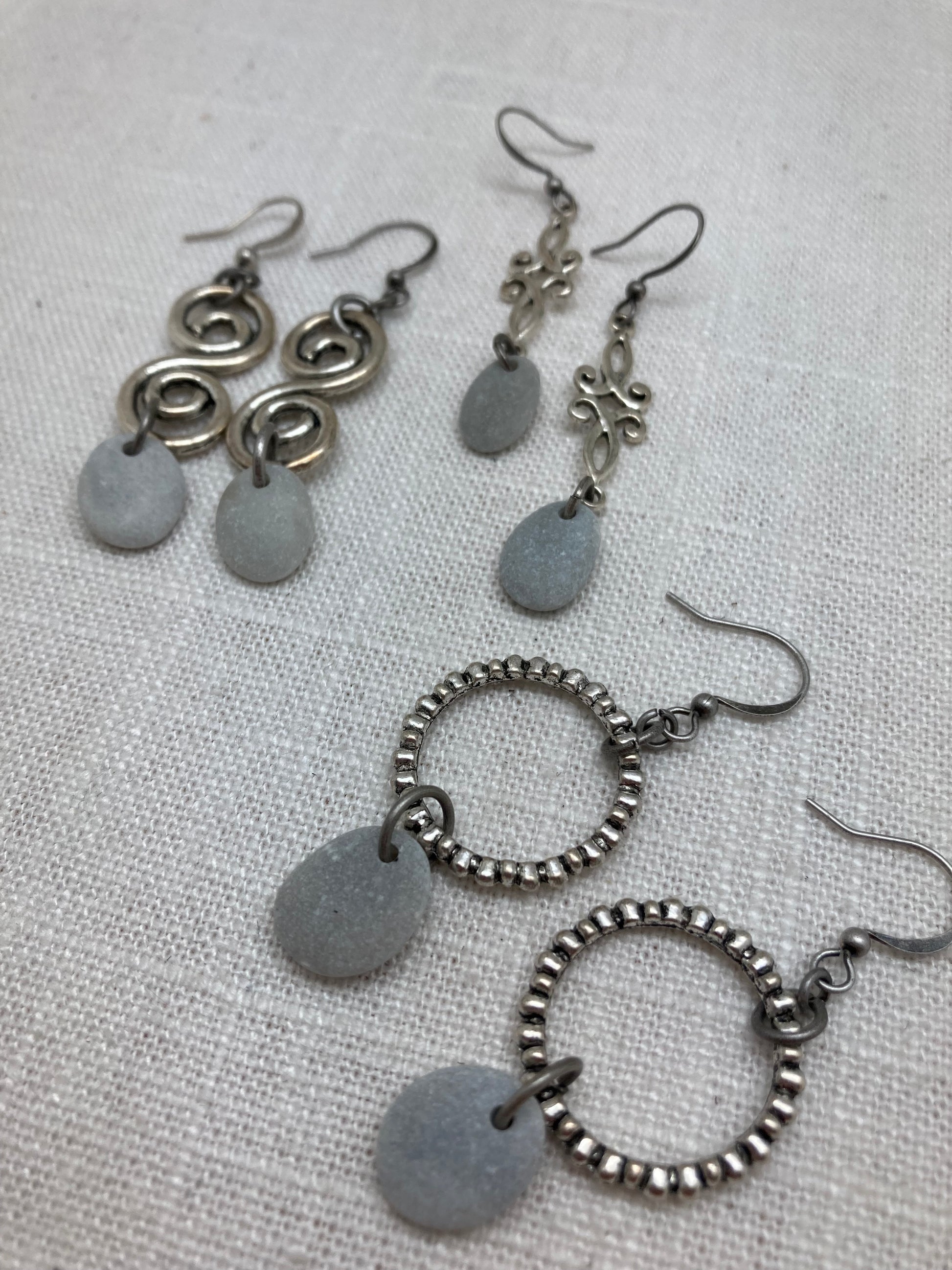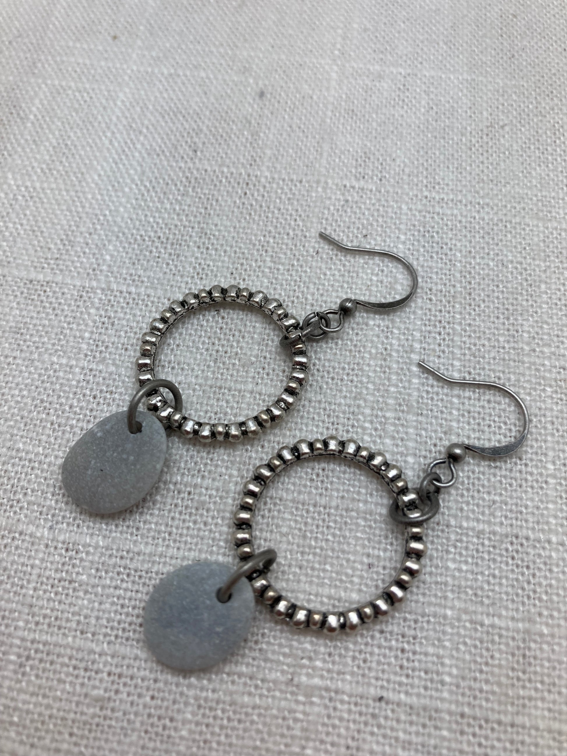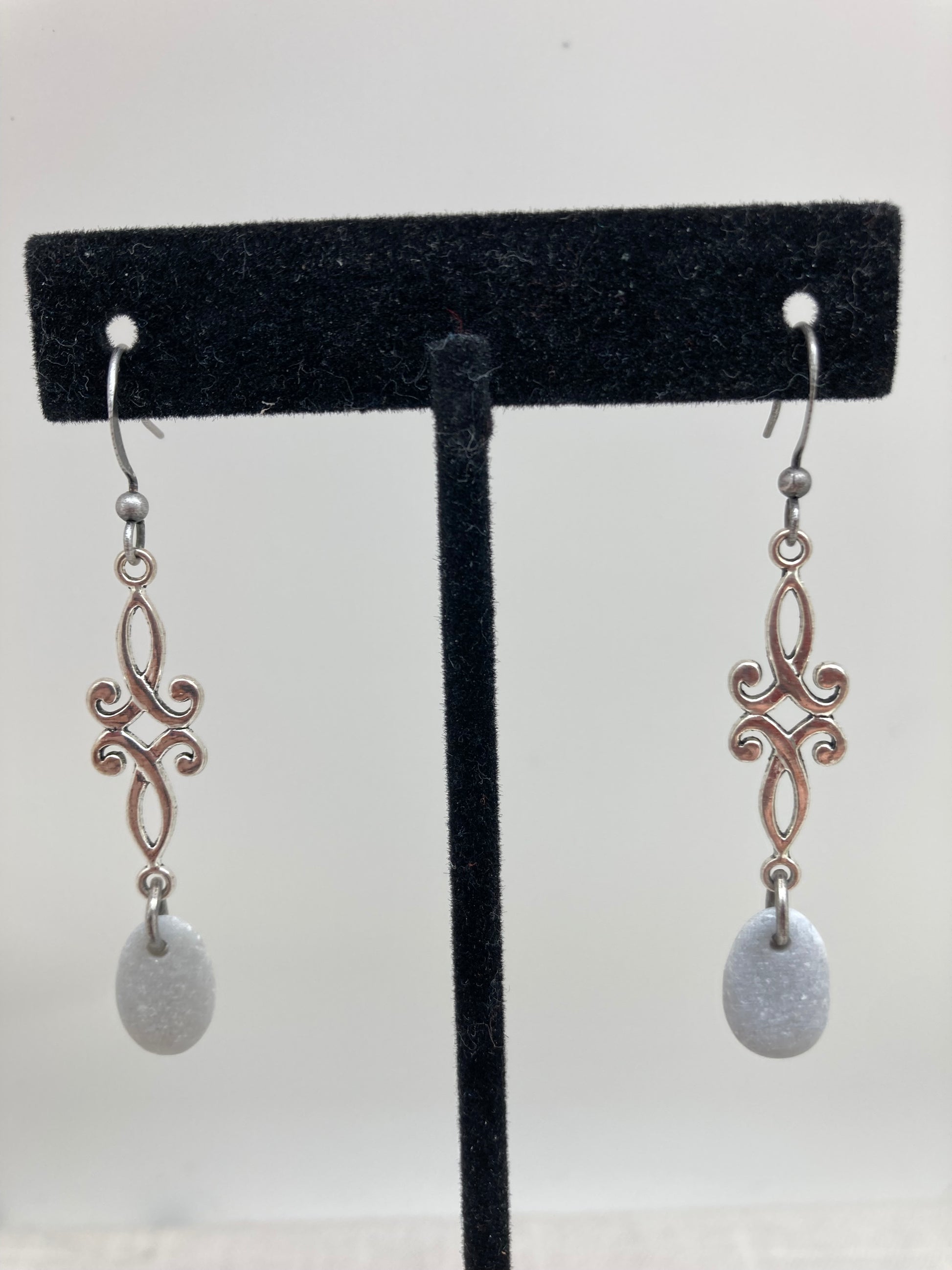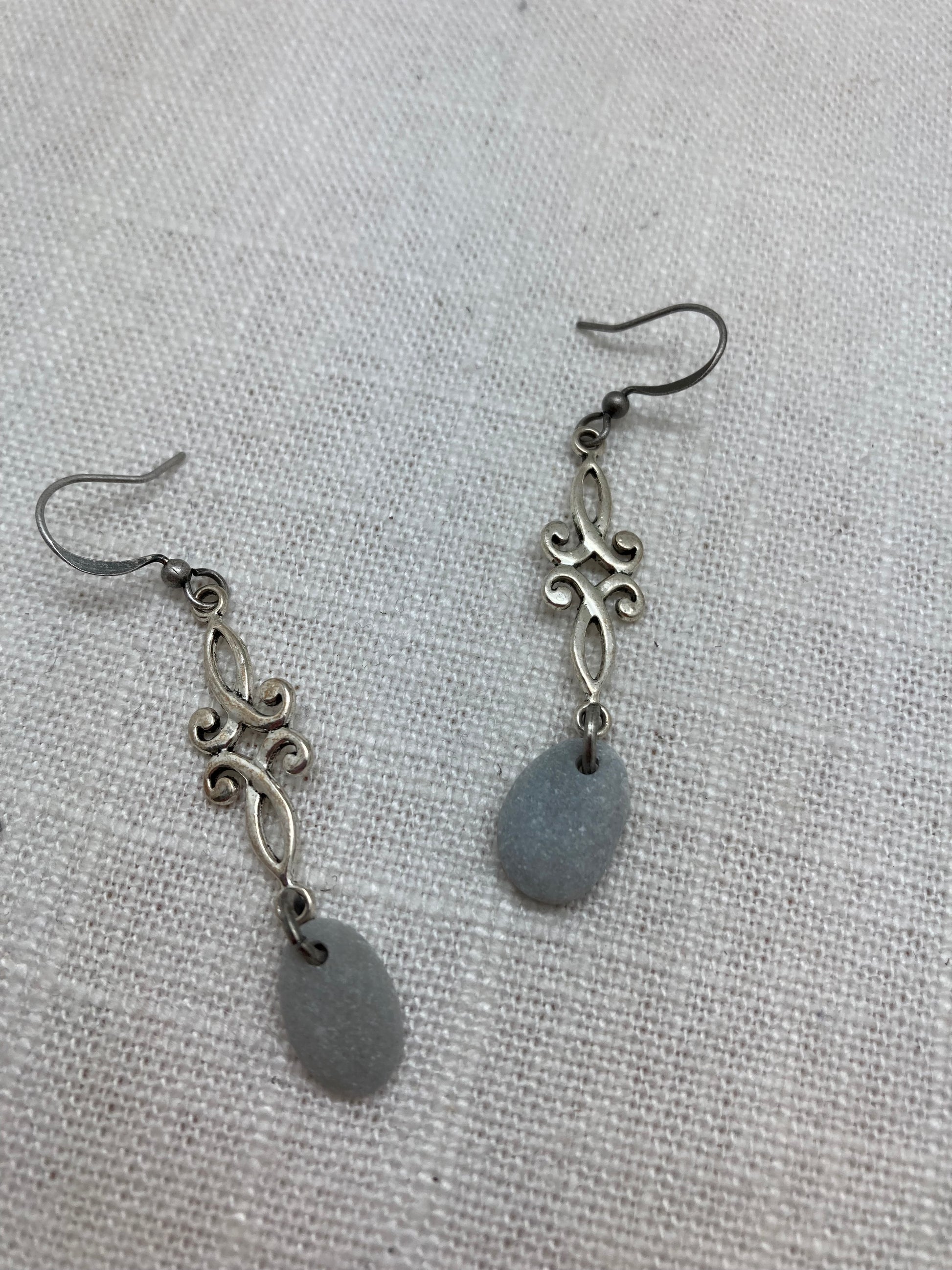 Named for the most beautiful place on the Guadalupe River, these earrings highlight smooth gray river rocks with an antique silver charm.