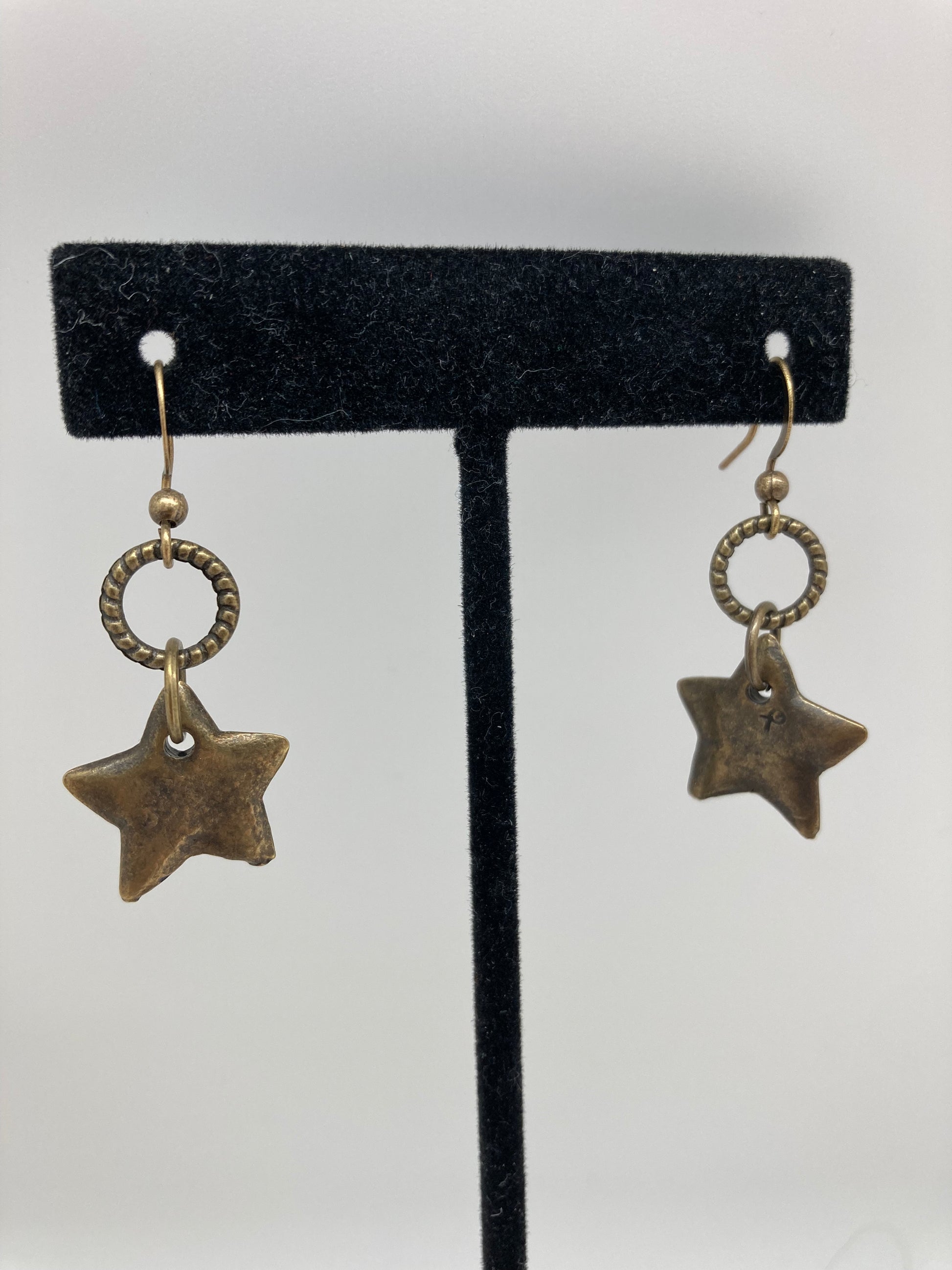 One simple oxidized brass star on a single loop. Great everyday earring.