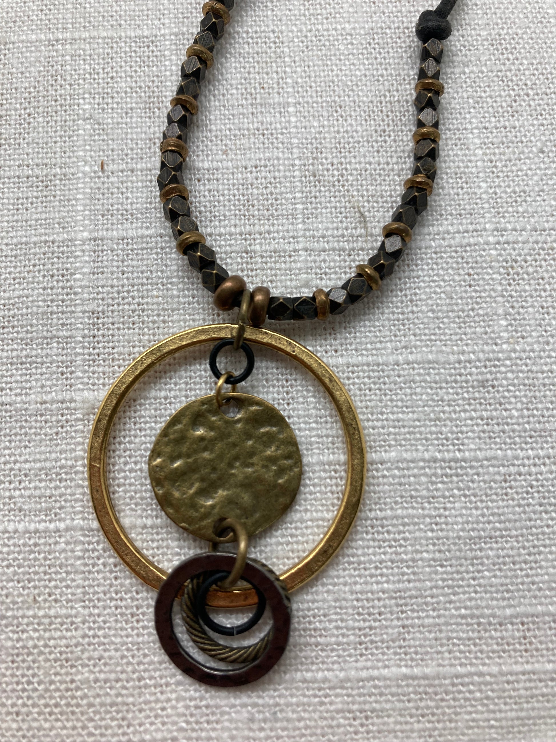 The bebop original mixed metal and black leather necklace was created to give jeans and t-shirt that extra pop. Adjustable from 16.5 to 19 inches.