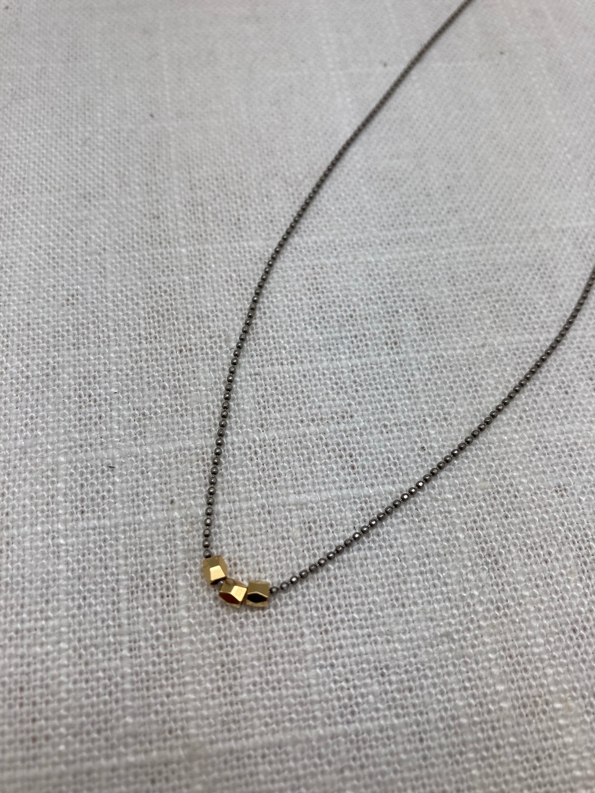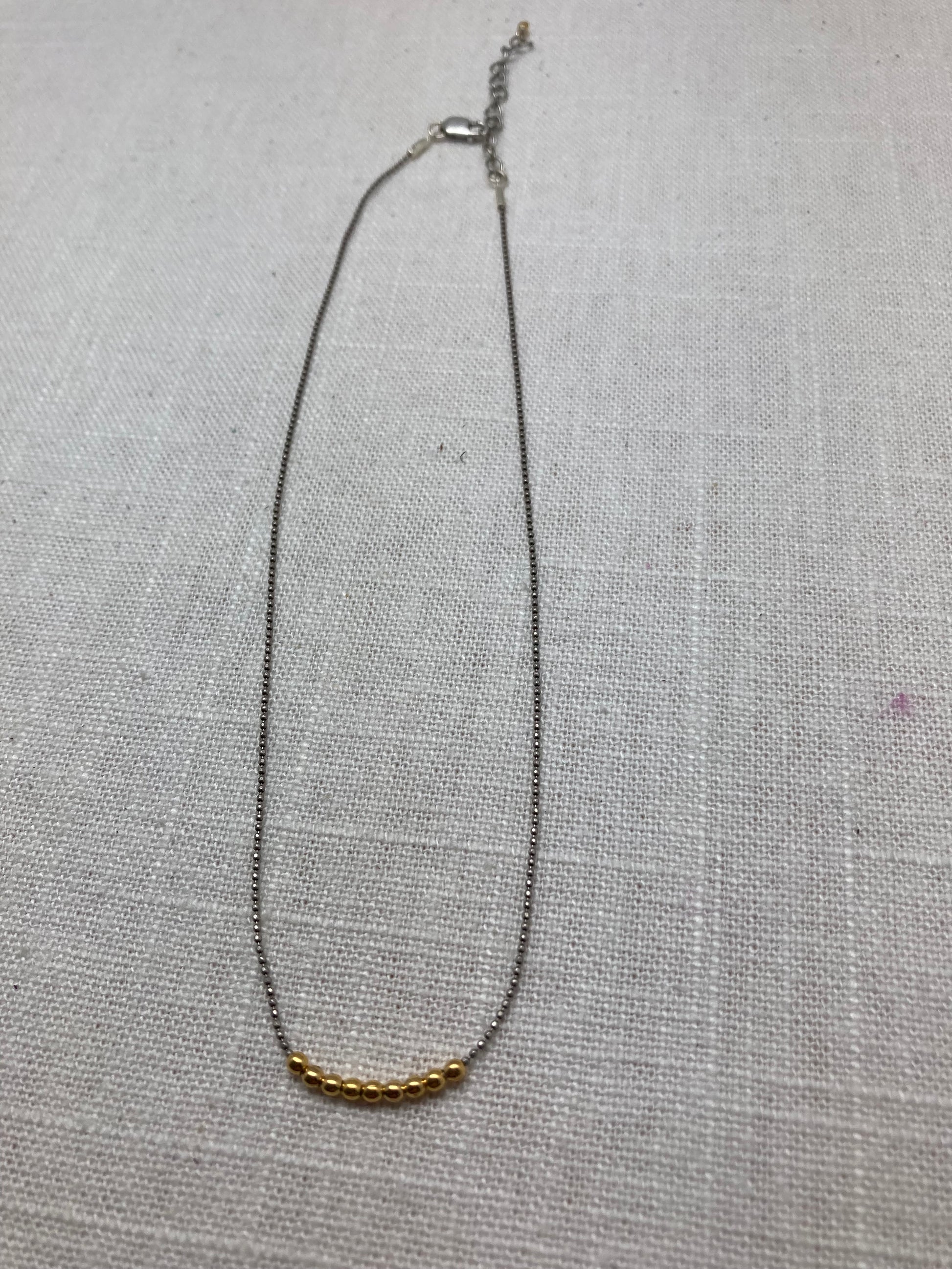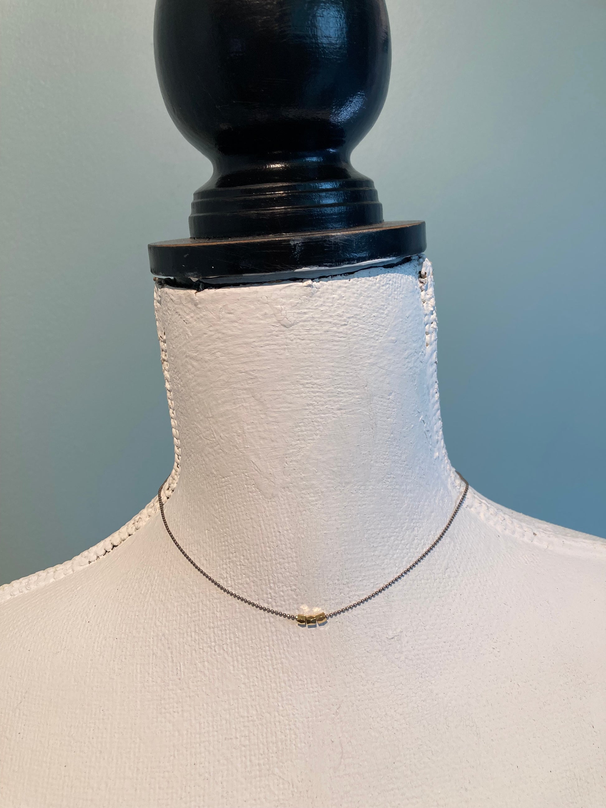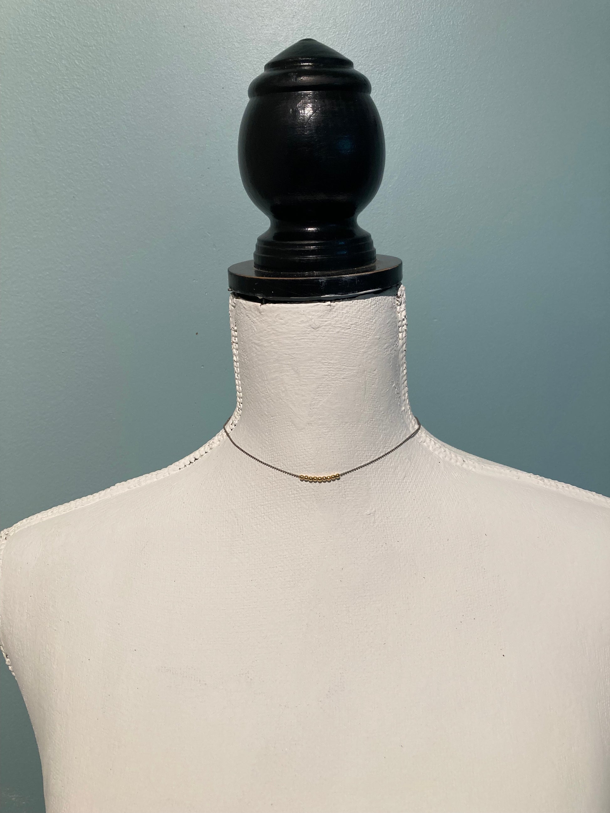 Delicate antique silver ball chain choker with your choice of accent beads that nestle at the throat.