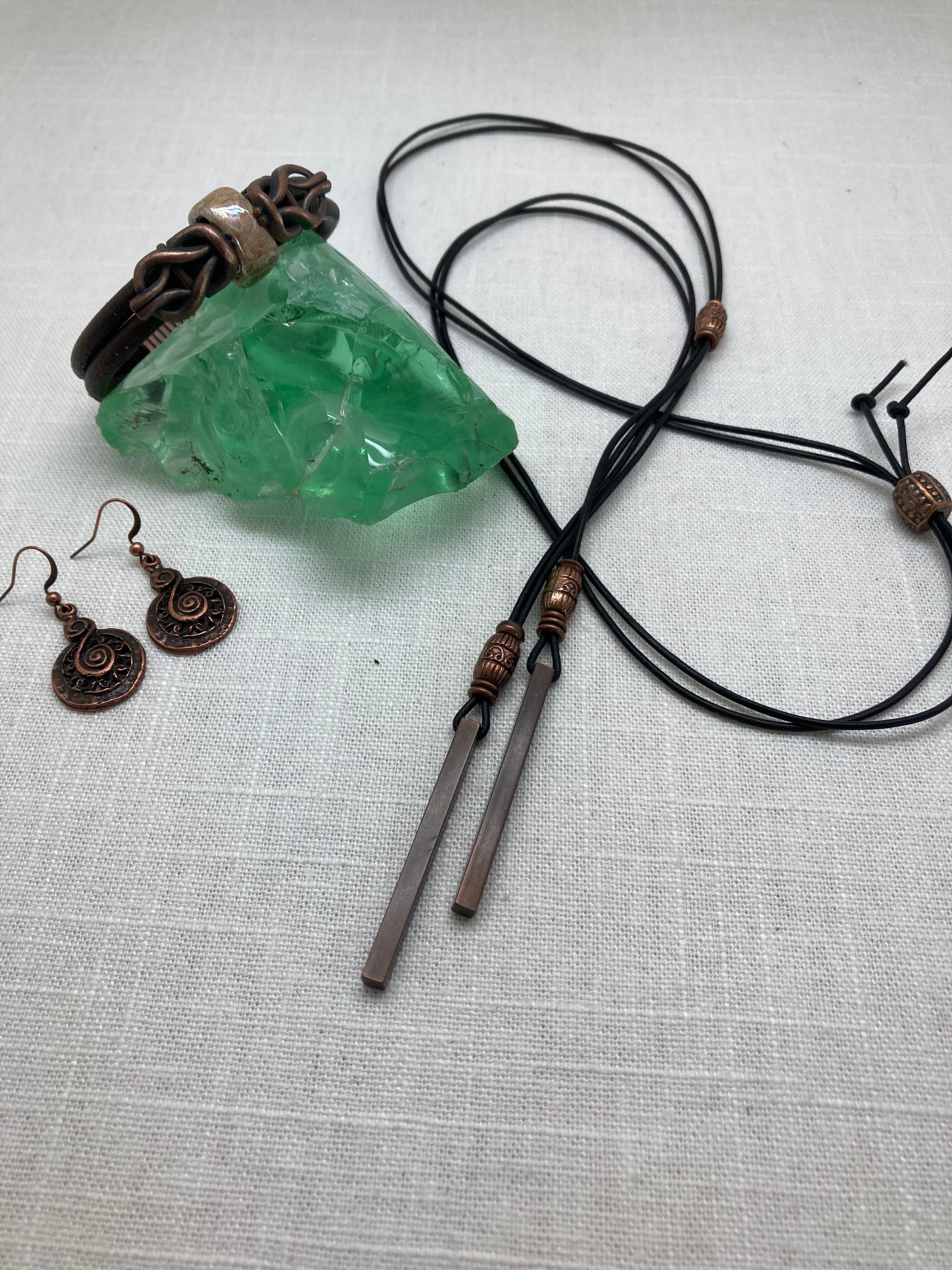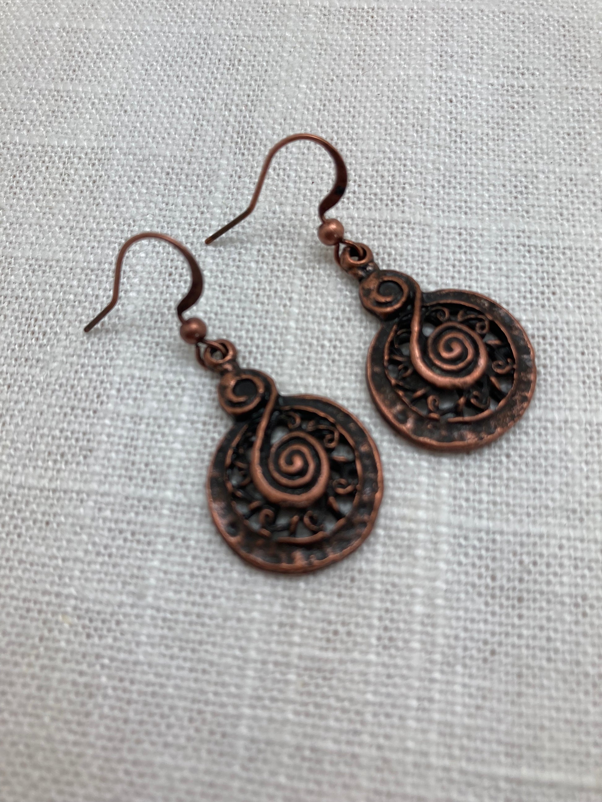 These are Bebop's bestselling earrings. Featuring metallic spiral designs in either copper or antique silver, they are a perfect everyday earring and can be paired with almost anything in the entire jewelry collection.
