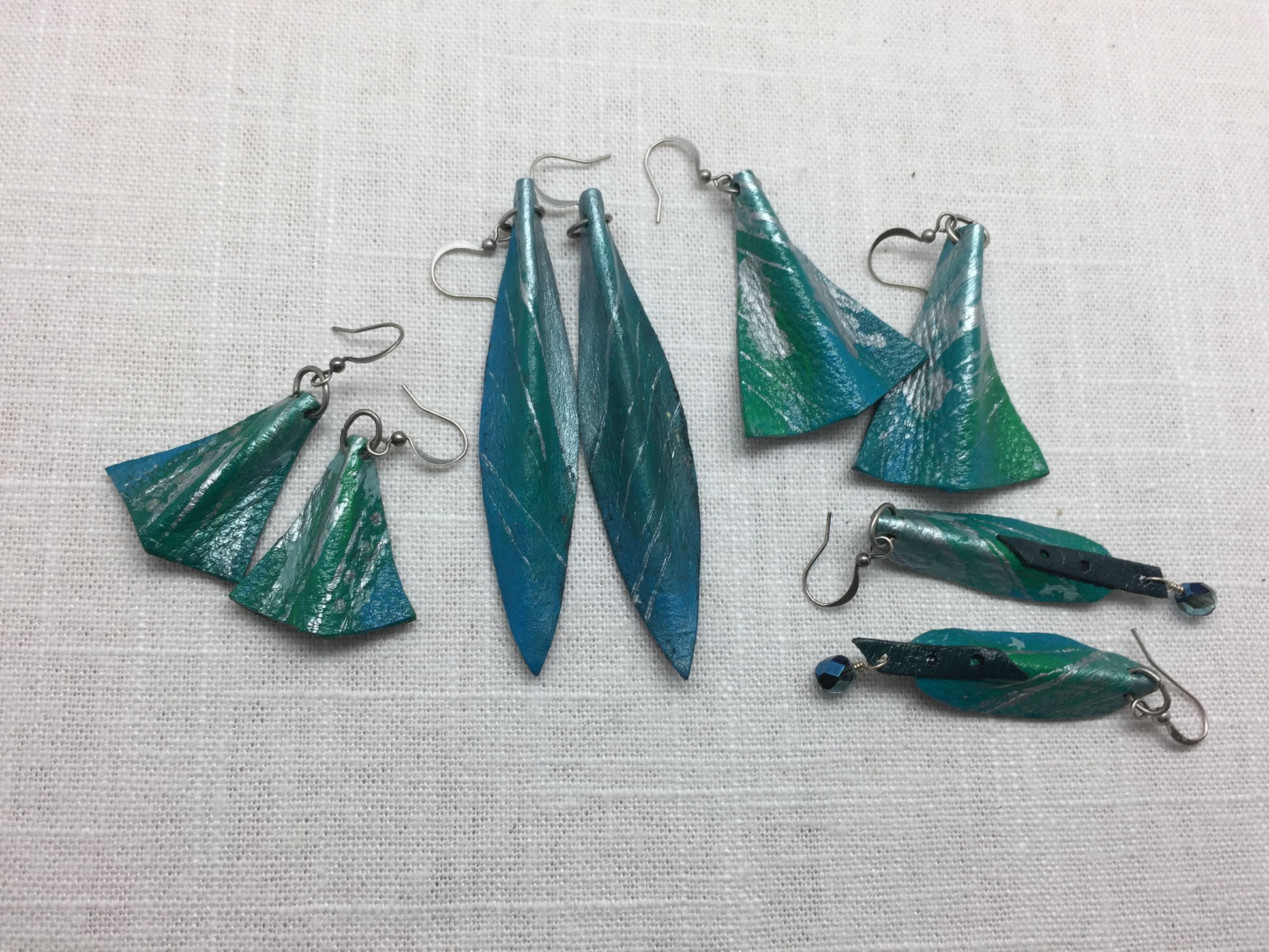 spring and silver painted leather earrings