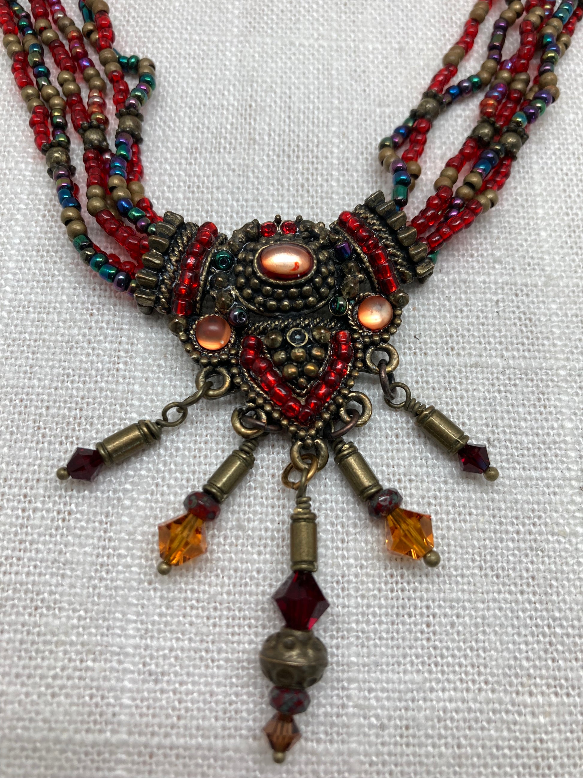 The beads and the focal of this necklace are original to the piece but I had to add a few things to bring it back to life.